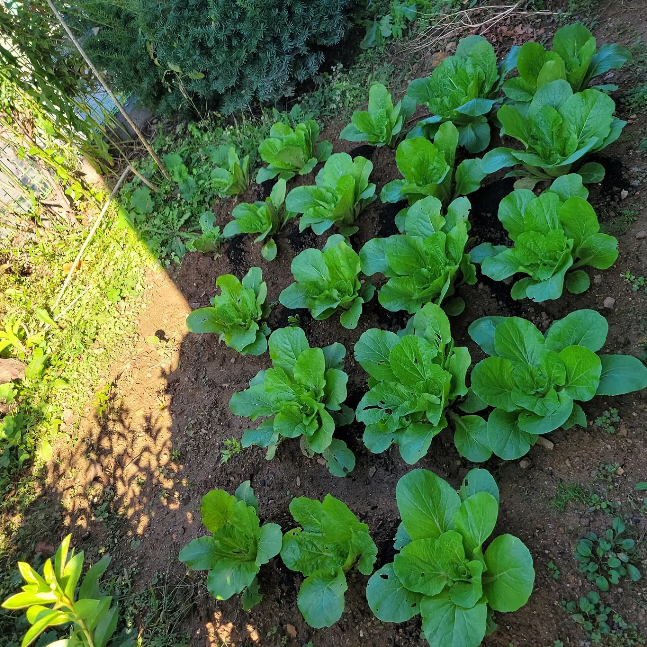 물론 남들보다 늦게 심기도 했고 영양분도 부족하지만 더 큰 문제는 햇빛이다. 아침부터 저녁까지 해를 받는 건물 남쪽 벽 아래 화분의 배추들은 벌써 속이 차오르려고 준비 중이다. 그런데 오후에만 빛을 받는 서쪽의 텃밭 배추들은 같은 날 심었다고 믿어지지 않을 만큼 성장 속도가 느리다.