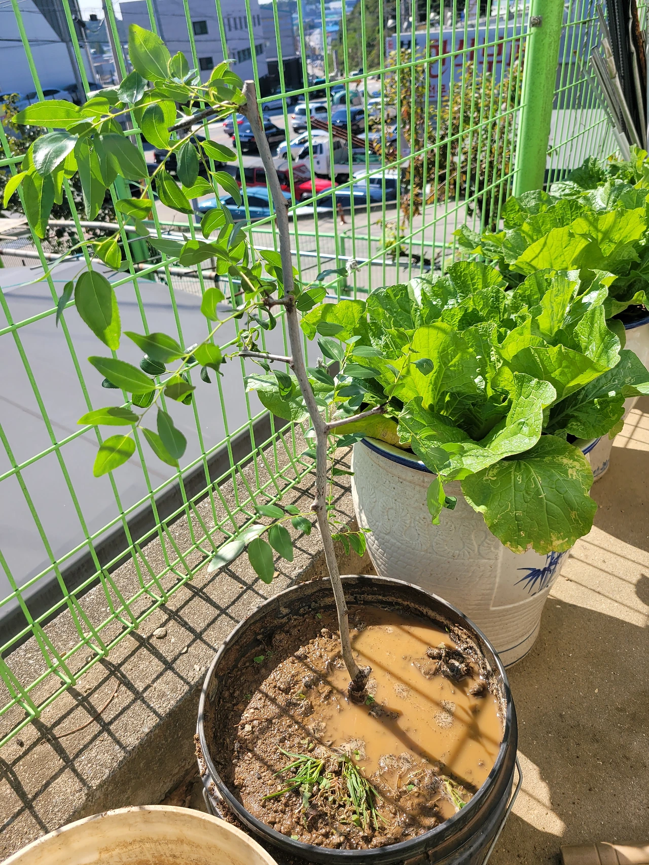 배송된 여섯 그루 묘목을 보니 다시 웃음이 나왔다. 남들이 이걸 보면 뭐라고 할까. 큰 화분에 우선 한 그루를 심었다. 그런 다음 다 늦게 열매를 맺고 있는 감나무 옆 고추나무를 미련 없이 뽑았다. 아무리 머리를 굴려 봐도 자리는 거기밖에 없었고 서리 내리면 어차피 고추는 뽑아야 하니 조금 시기를 앞당길 뿐이라고 합리화하면서. 화분에 심은 것은 그렇다 치더라도 혹자들은 궁금할 것이다. 굳이 남의 땅에 왜?