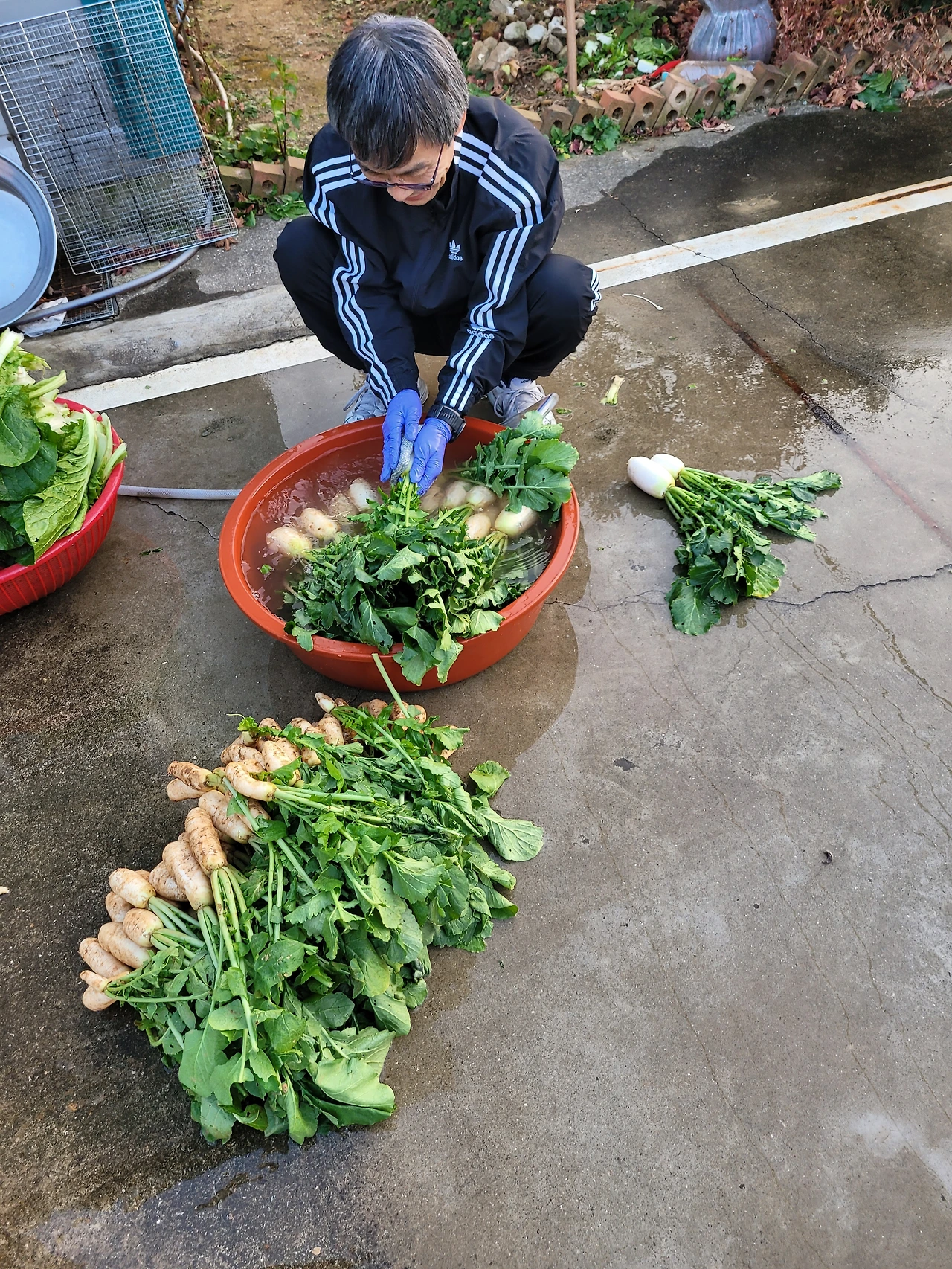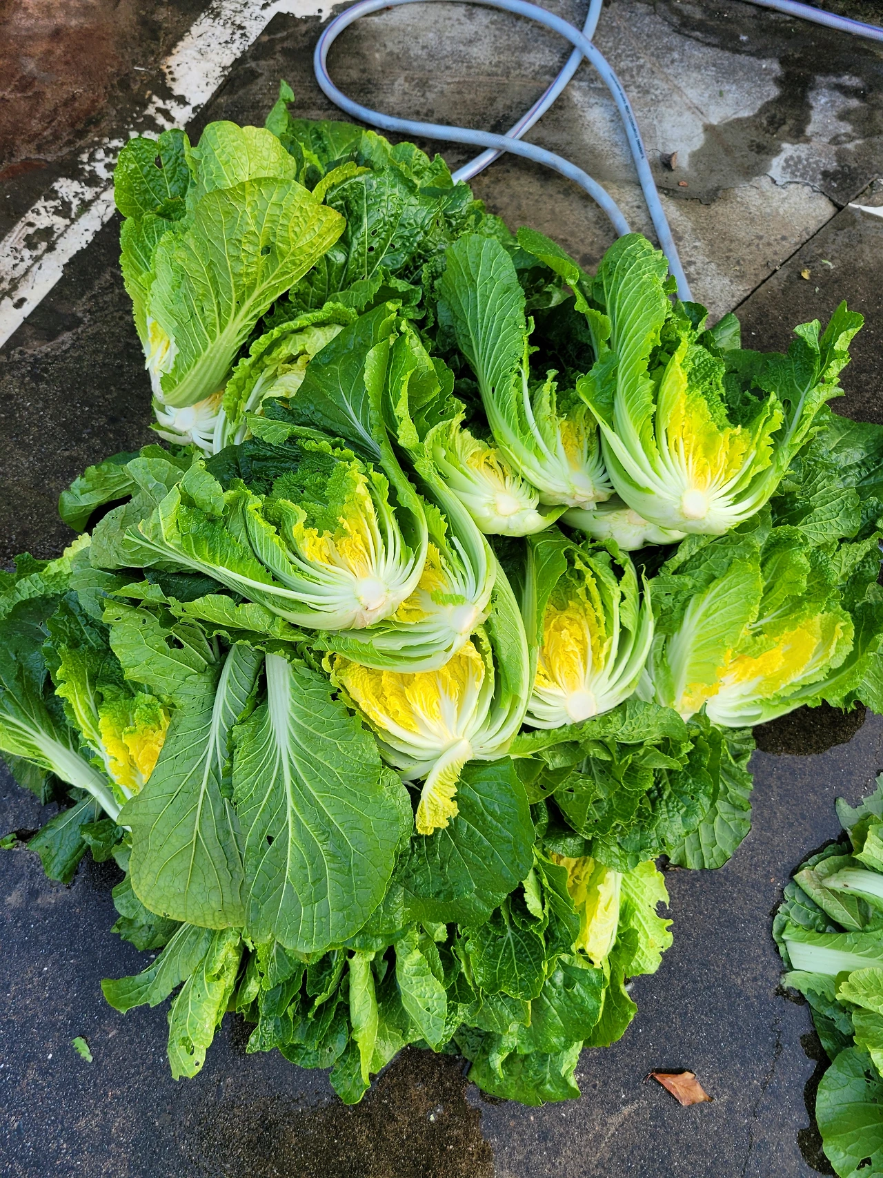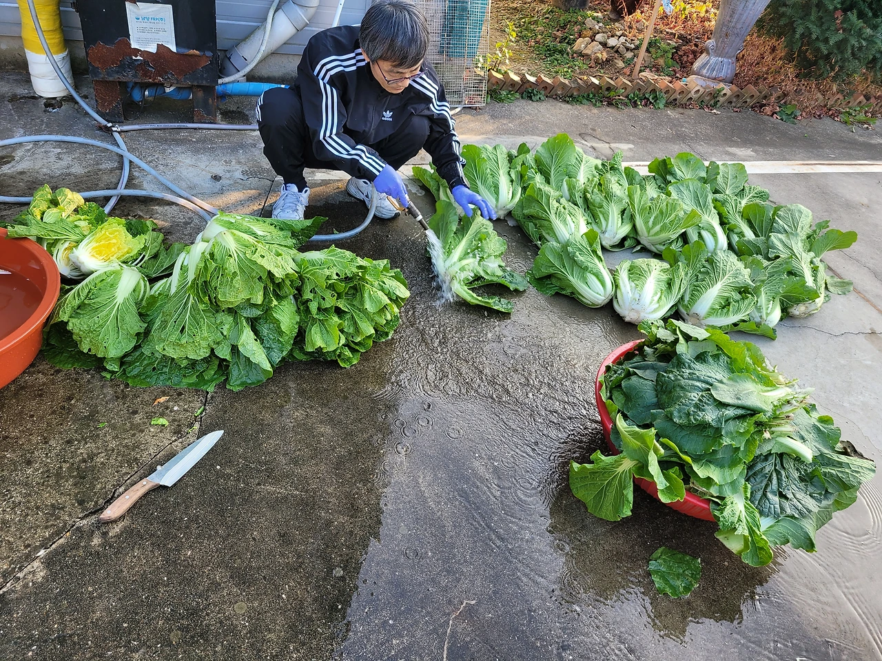 절여놓은 배추를 건져보니 기껏해야 한 바구니였다. 주문한 절임배추 한 박스랑 같은 양이었다. -한 박스 일곱 포기-그걸 보니 40포기라는 숫자의 의미가 참으로 무색했다. 내가 배추를 키운 거냐? 상추를 키운 거냐? 현타가 올 수밖에 없었지만 그래도 맛은 확실히 비교불가였다. 그 맛에 내가 그 고생을 했구나, 그동안의 수고를 단번에 상쇄할 맛이었다.