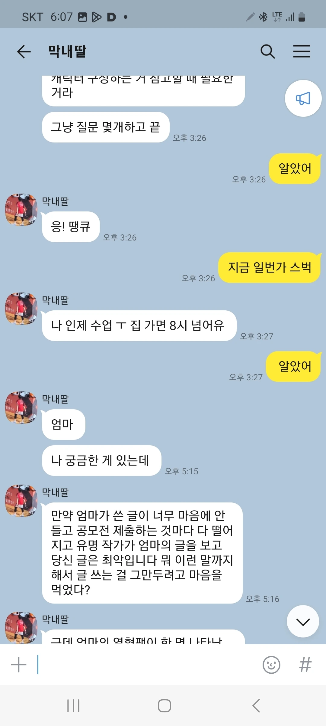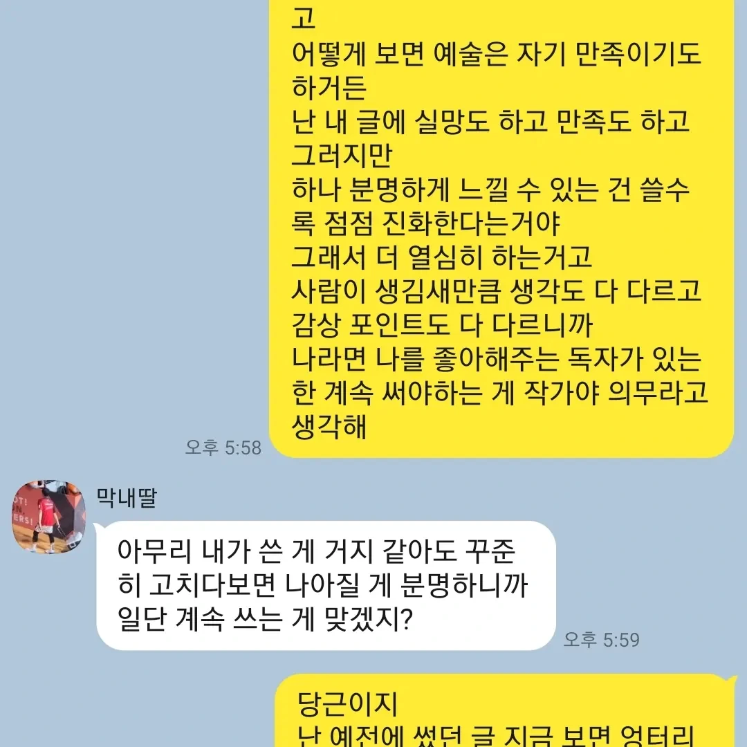 극작과제물을 계속해서 지적만 받다가 몇 마디 해줬더니 그날밤 머리 싸매고 혼자 끙끙거리며 완성한 막내