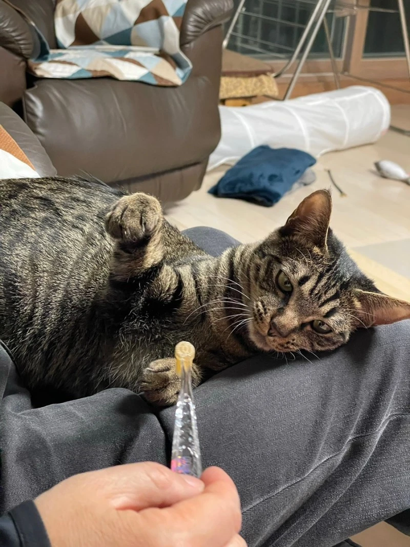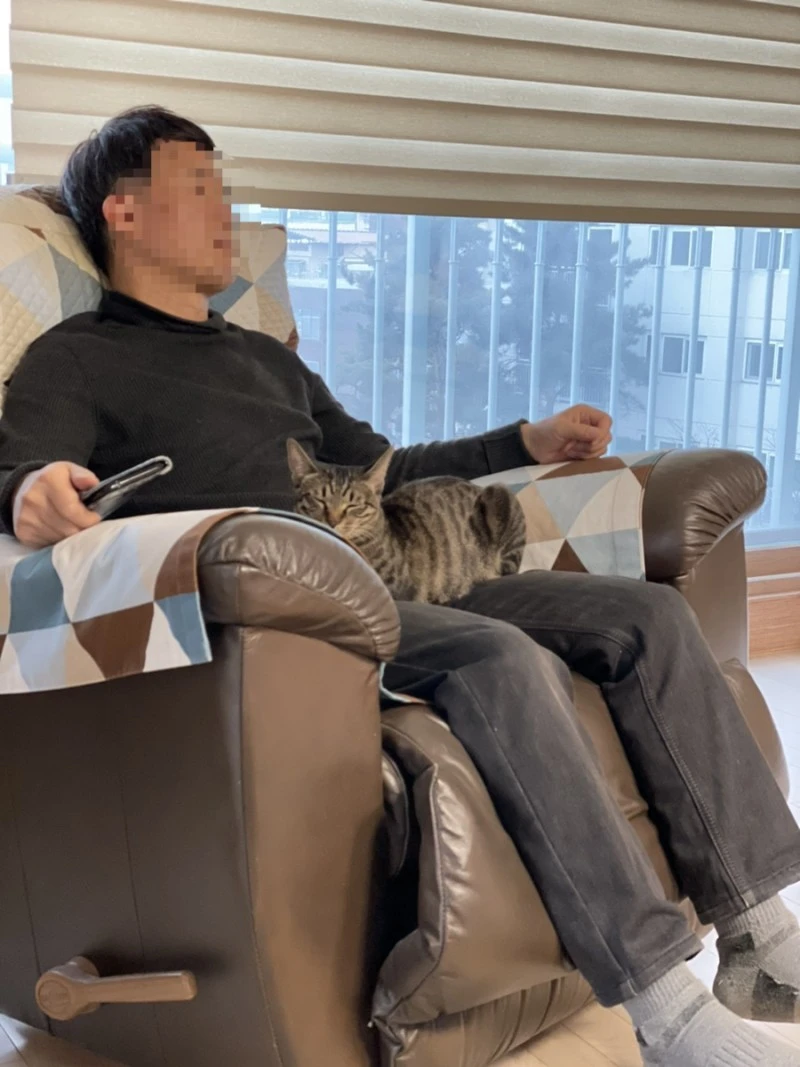 내가 회사에서 구조한 고양이를 다른 집으로 입양 보내기 전까지 친정에 임시보호를 부탁했었는데 아빠가 고양이와 정이 담뿍 들어서 그냥 입양하기로 하신 것.