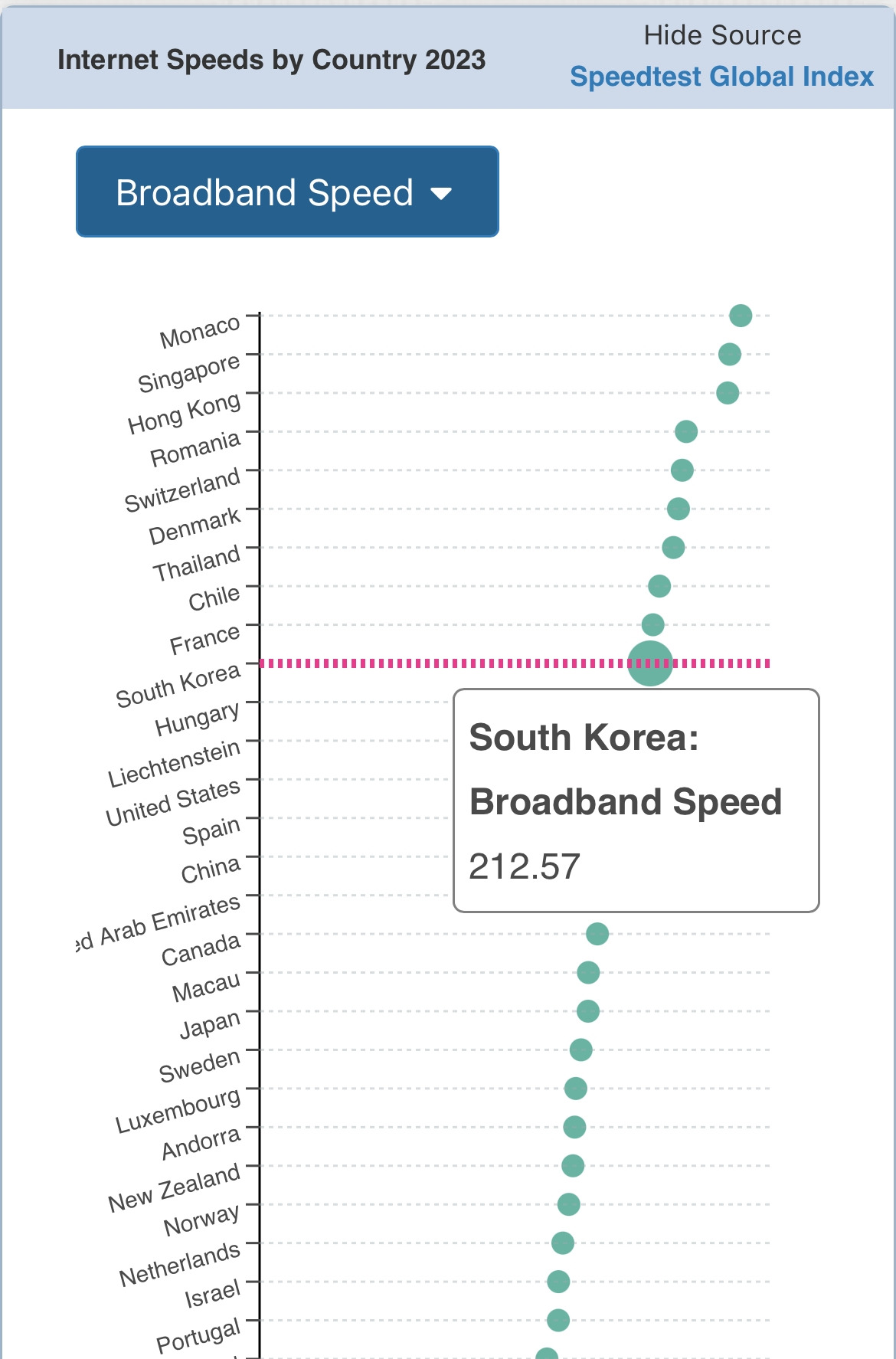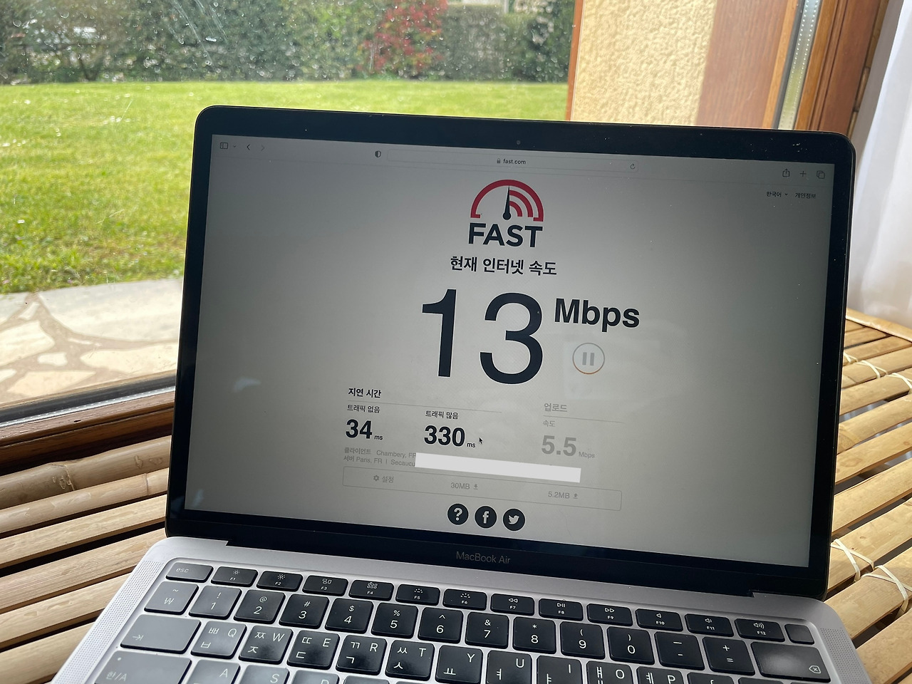 프랑스가 인터넷 속도가 느린 나라는 아닐지언데 모바일 속도만 봤을 때는 한국의 절반 정도밖에 안 될 정도로 느리고, 우리가 살고 있는 지역은 프랑스 평균보다 훨씬 느리다.