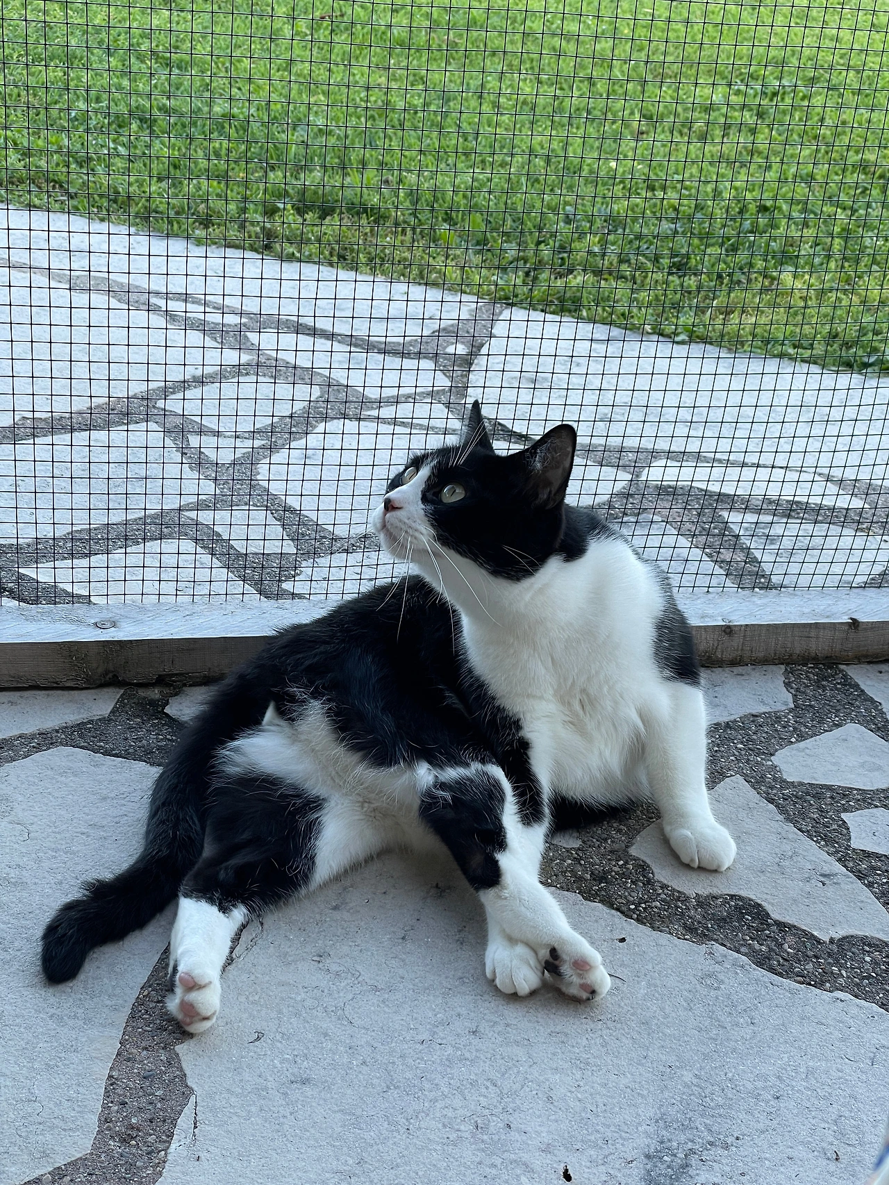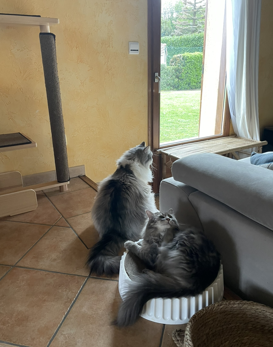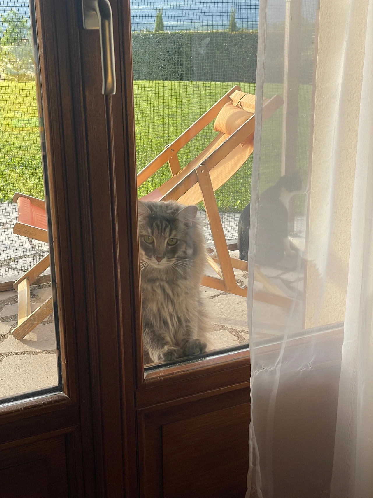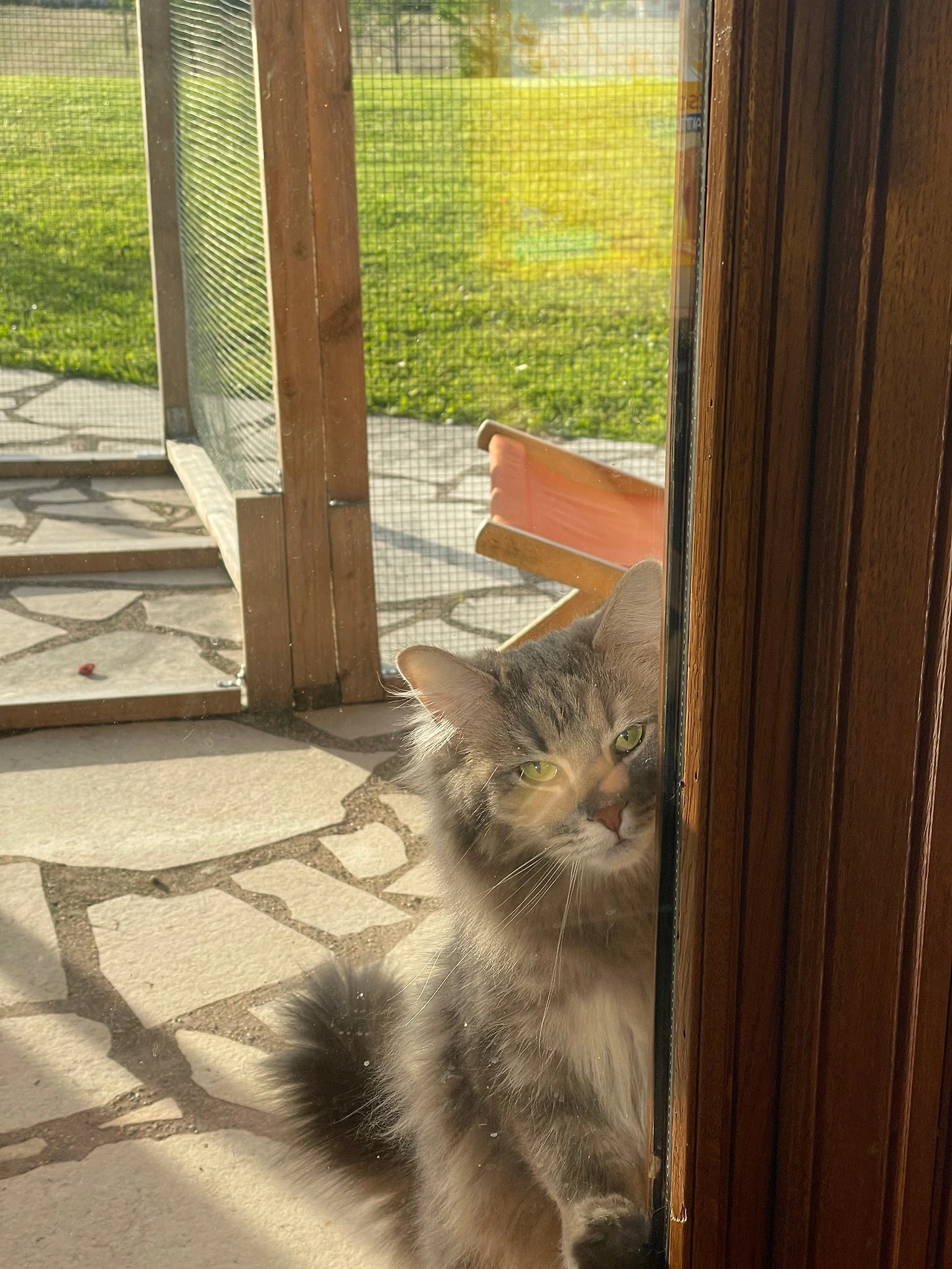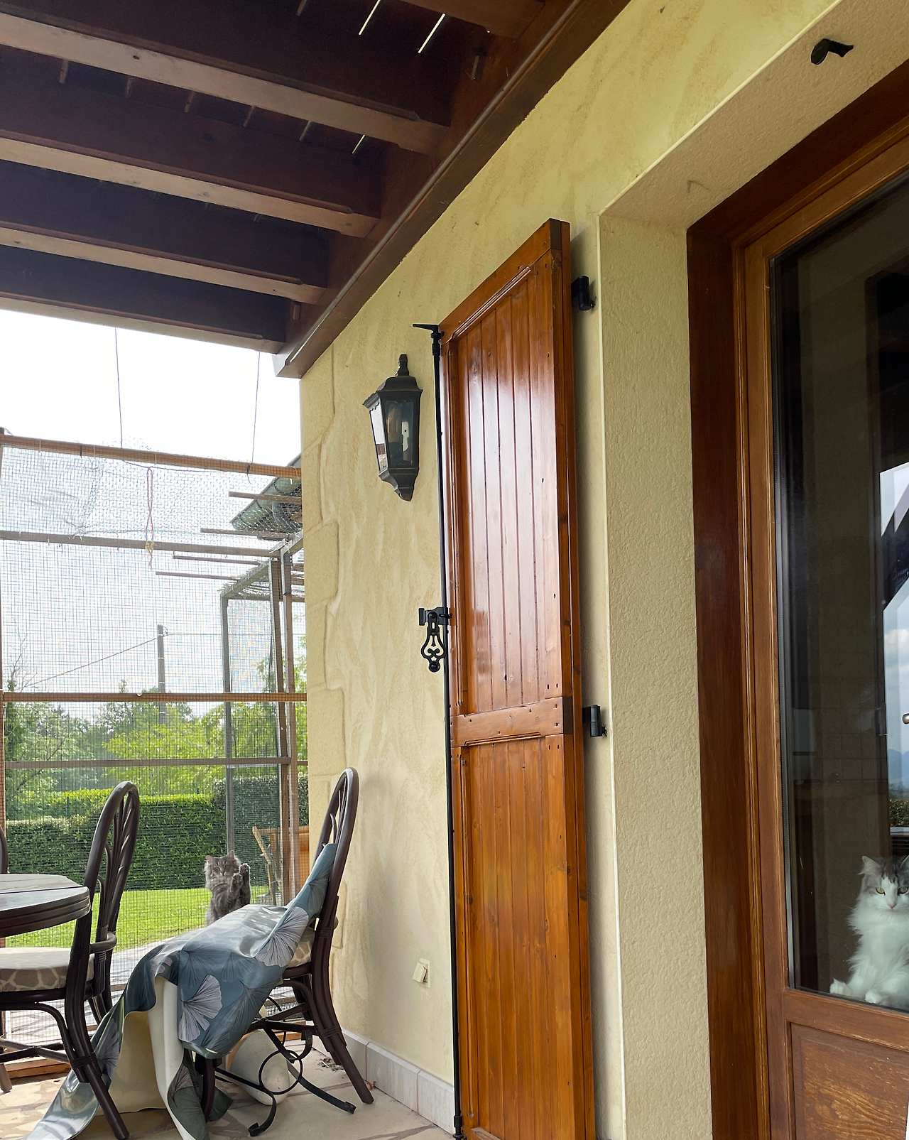 이쯤 되면 캣타워나 2층에서 자던 치치가 도도도 달려와 먀아- 하며 발치에서 인사를 해야 하는데 치치가 보이지 않는다. 아니, 얘가 어디 갔지? 간식 주머니를 흔들면서 온 집안을 찾아다녔는데 치치가 보이지 않아 혹시나 하고 캣티오로 향하는 덧문(볼레, volet)을 열었더니, 세상에.. 남편이 밤에 문단속을 하면서 치치가 밖에 앉아 있는지도 모르고 문을 닫은 것이다. 밤새 이 밖에서 얼마나 무서웠을까. 요즘 그나마 춥지 않아 다행이지.