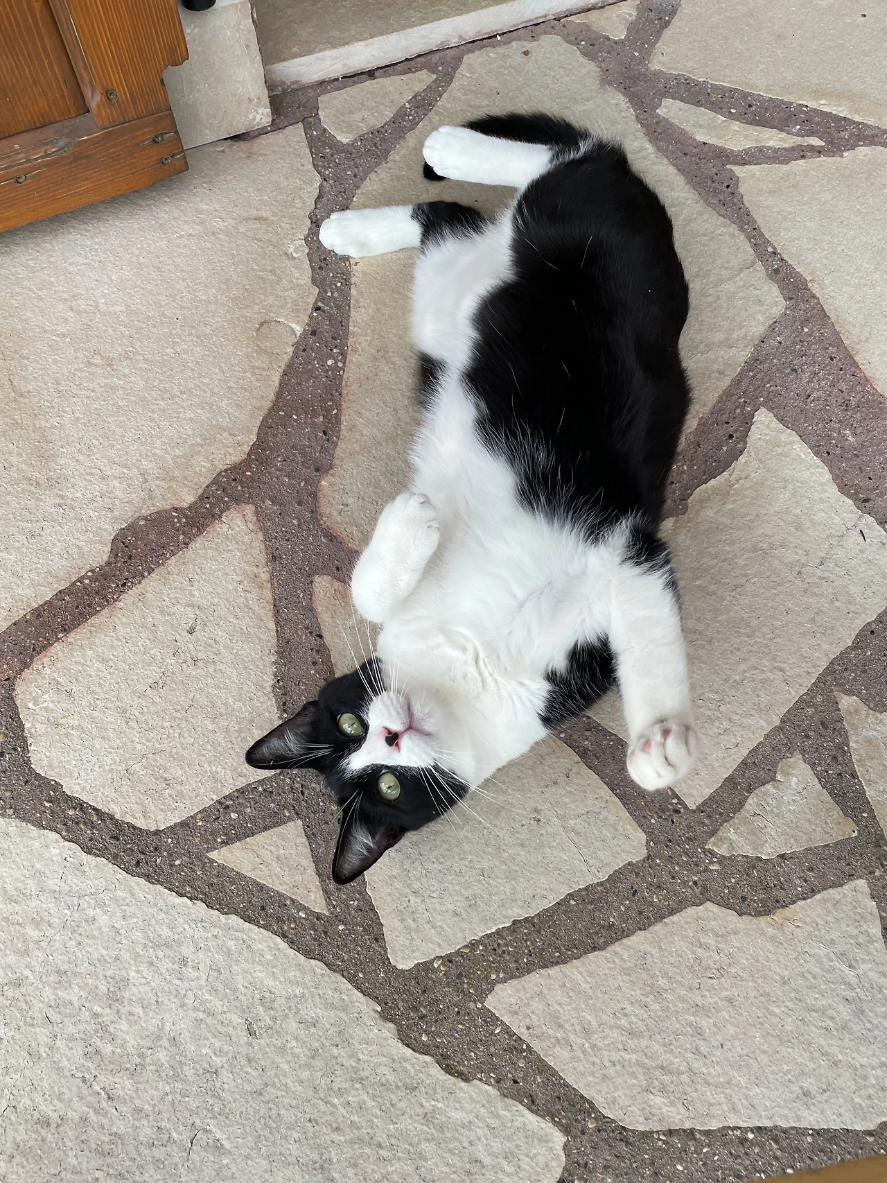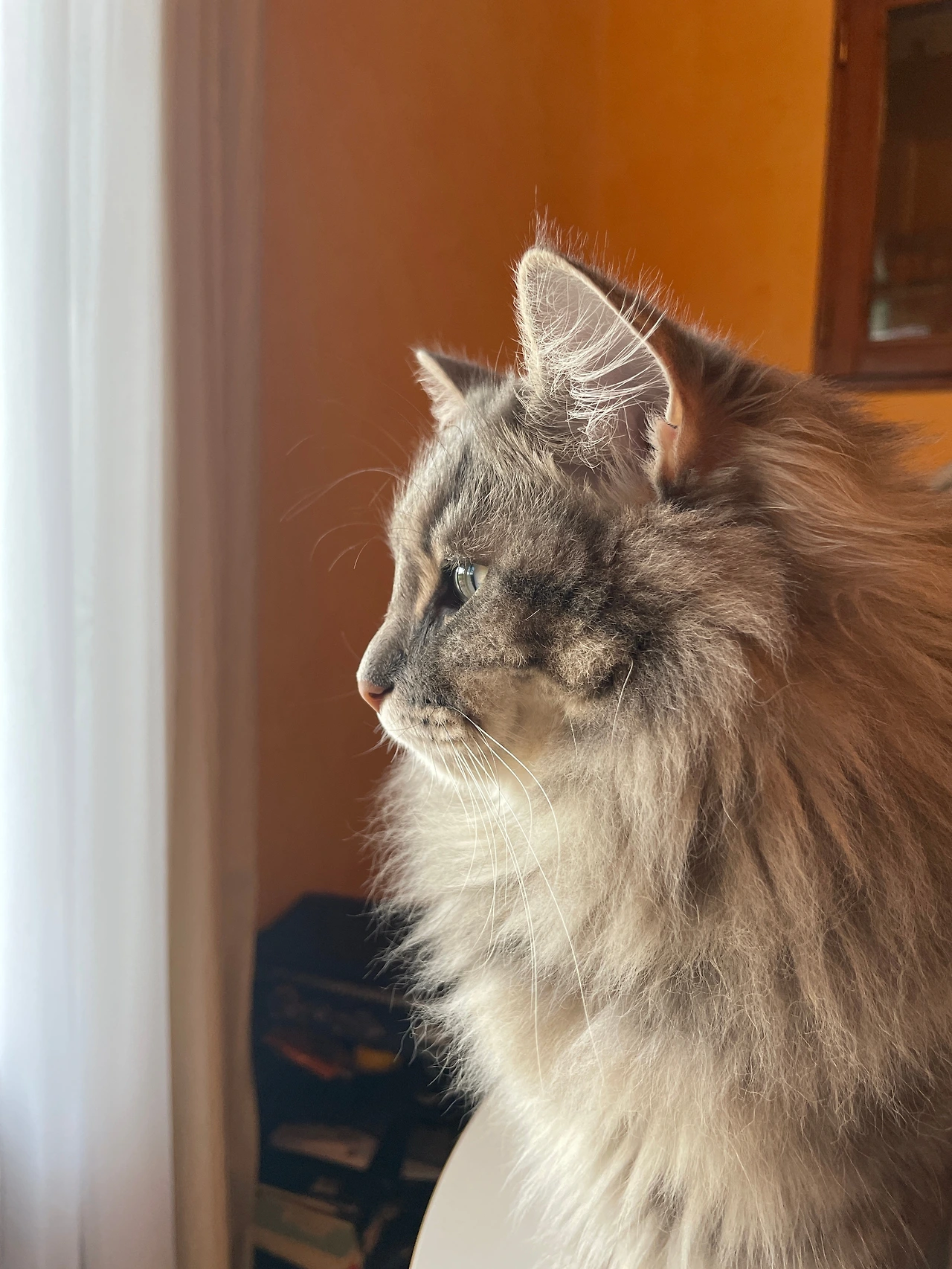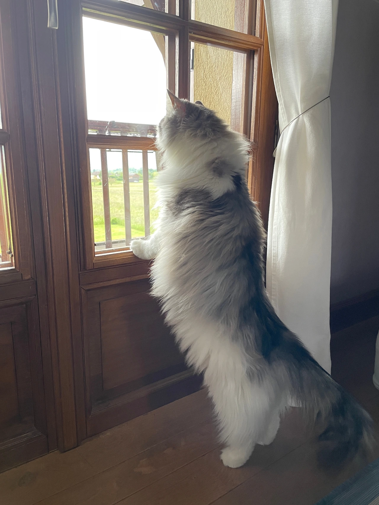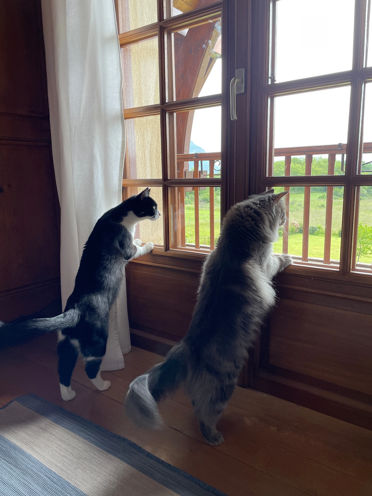 이쯤 되면 캣타워나 2층에서 자던 치치가 도도도 달려와 먀아- 하며 발치에서 인사를 해야 하는데 치치가 보이지 않는다. 아니, 얘가 어디 갔지? 간식 주머니를 흔들면서 온 집안을 찾아다녔는데 치치가 보이지 않아 혹시나 하고 캣티오로 향하는 덧문(볼레, volet)을 열었더니, 세상에.. 남편이 밤에 문단속을 하면서 치치가 밖에 앉아 있는지도 모르고 문을 닫은 것이다. 밤새 이 밖에서 얼마나 무서웠을까. 요즘 그나마 춥지 않아 다행이지.
