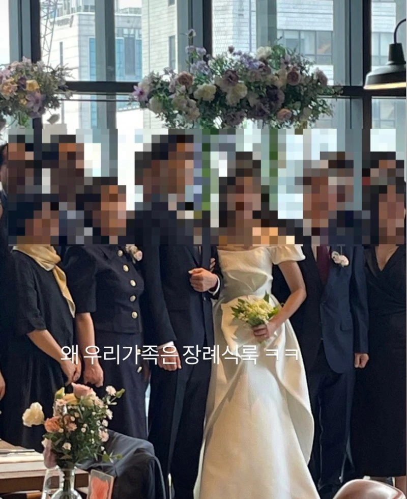 A : "결혼식의 주인공은 신부니까 흰 드레스를 입은 신부가 돋보일 수 있도록 밝은 색 옷은 피하는 게 예의지"