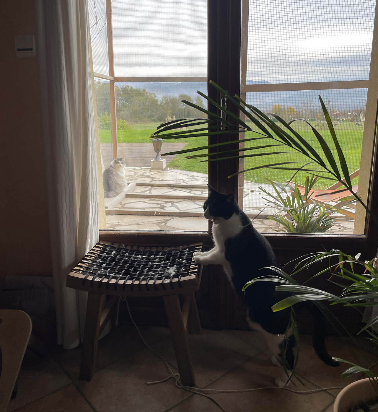 고양이들은 비가 오지 않는 날엔 캣티오 끄트막에 앉아서 목이 빠져라 소들을 구경했다. 까마귀 들은 고양이들이 캣티오를 넘어올 수 없다는 걸 아는지 마당을 종종 걸어 다니며 고양이들의 애를 태웠다. 나는 추워 죽겠는데 이놈의 고양이들이 들어오면 바로 문을 닫아버리겠노라 종종거리며 문 앞을 어슬렁거렸다.