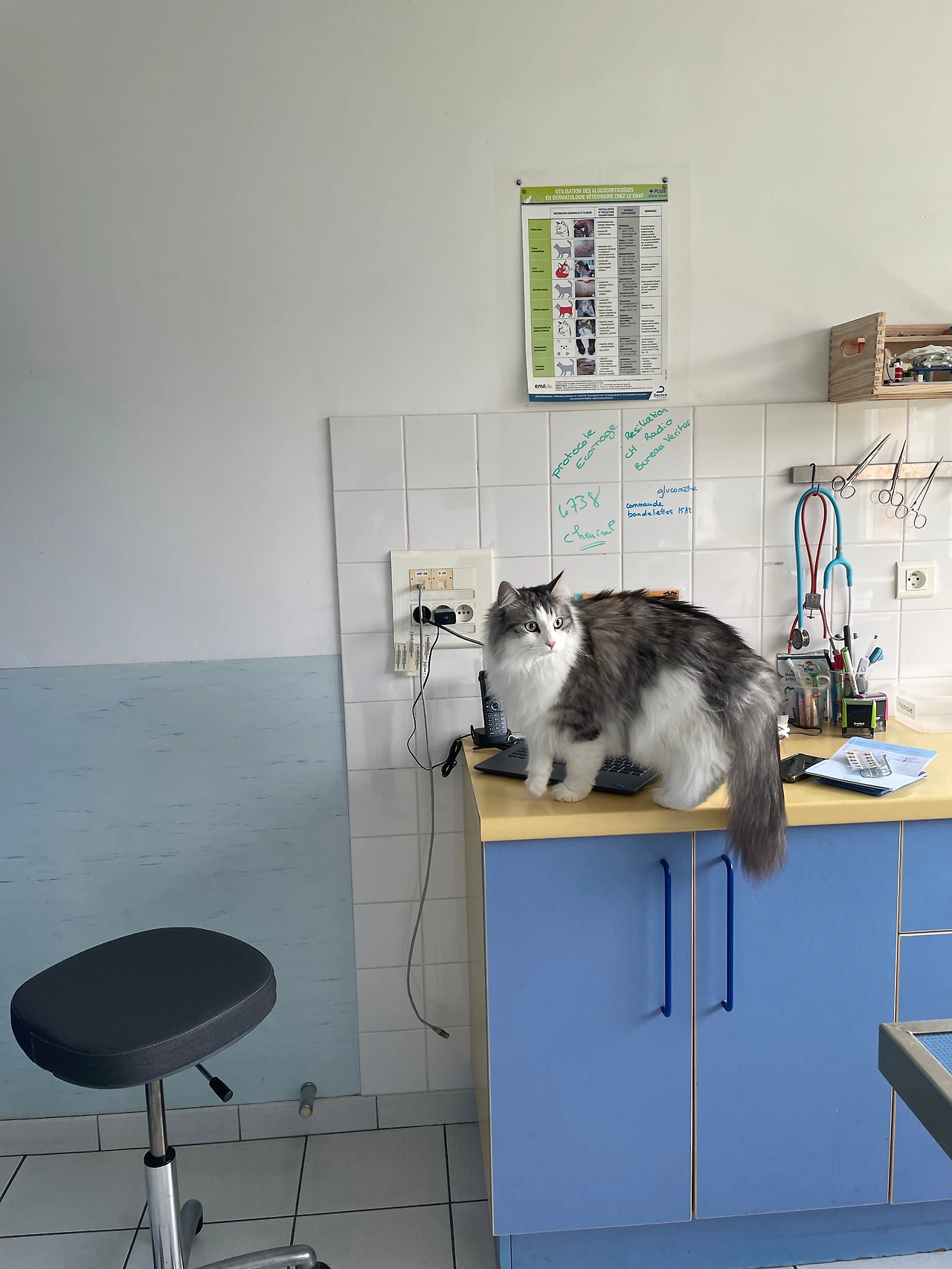 프랑스의 동물병원은 상담실과 처치실이 나눠져있지 않고 수의사마다 사무실이 있어서 보호자와 함께 상담하며 기본적인 치료를 한다. 엑스레이나 수술을 해야 하는 경우는 방이 따로 있다.