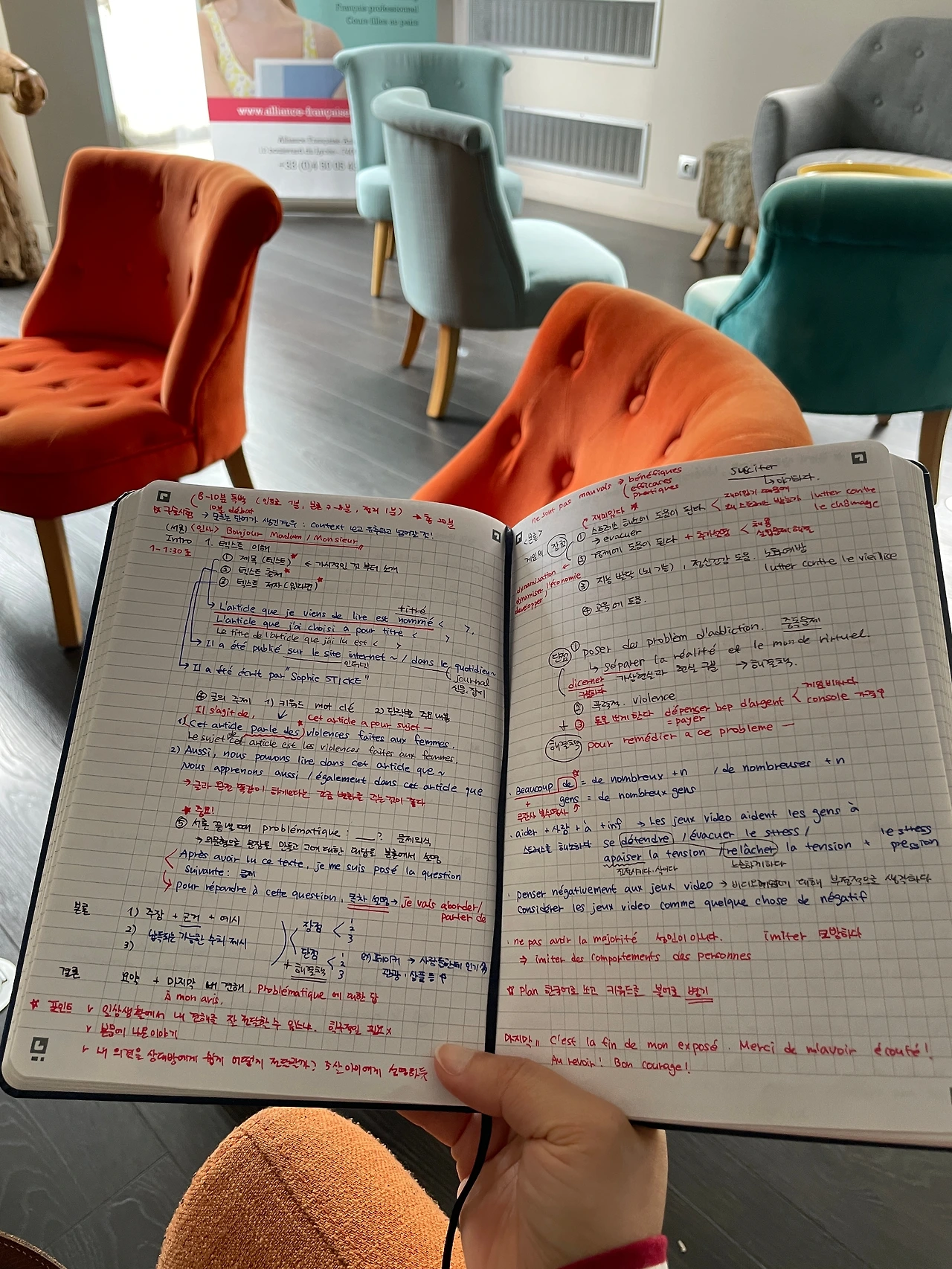 5월 시험 접수를 하자마자 시험 등록을 하고 주말마다 DELF 대비반 수업도 따로 들었다. 처음 모의고사를 쳤을 땐 어느 과목 할 것 없이 난이도가 너무 높아서 주말에는 수업 듣고 복습하고, 주중에는 퇴근하고 숙제하고, 문법 복습하고, 단어 외우기를 반복했다. 그리고 아침에 출근하면 동료들과 커피 마시면서 수다 떠는 10-15분 동안 불어를 쓰면서 불어로 말하는 두려움을 없애려고 노력했다. 확실히 영혼 없이 공부할 때보다 시험이라는 목표를 가지고 공부를 하니 집중도 잘되고 마음가짐 자체가 달라졌다고 해야 하나.
