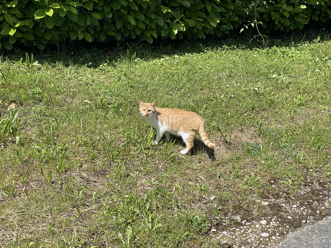이 동네에는 산책할 때마다 마주쳐서 익숙한 고양이만 해도 다섯 손가락을 넘어가는데, 대부분은 자기 집 마당이나 그 앞 도로정도까지만 나오고 가-끔 이렇게 허허벌판 와 맞닿아 있는 우리 집 정원까지 영역을 넓히러 오는 고양이들이 있다. 주인이 있는 외출 냥이들인지 길 고양이인지는 알 수 없다.