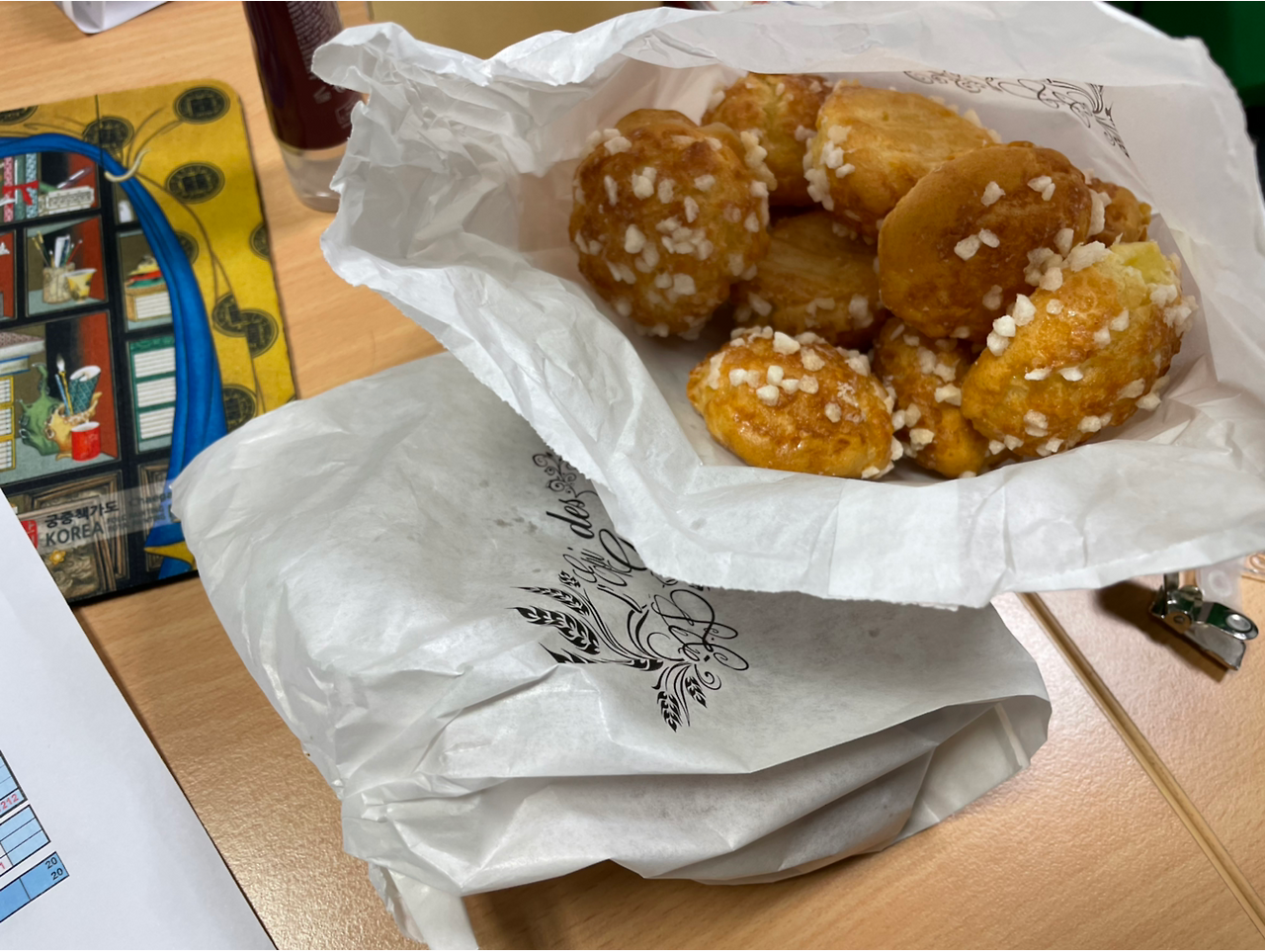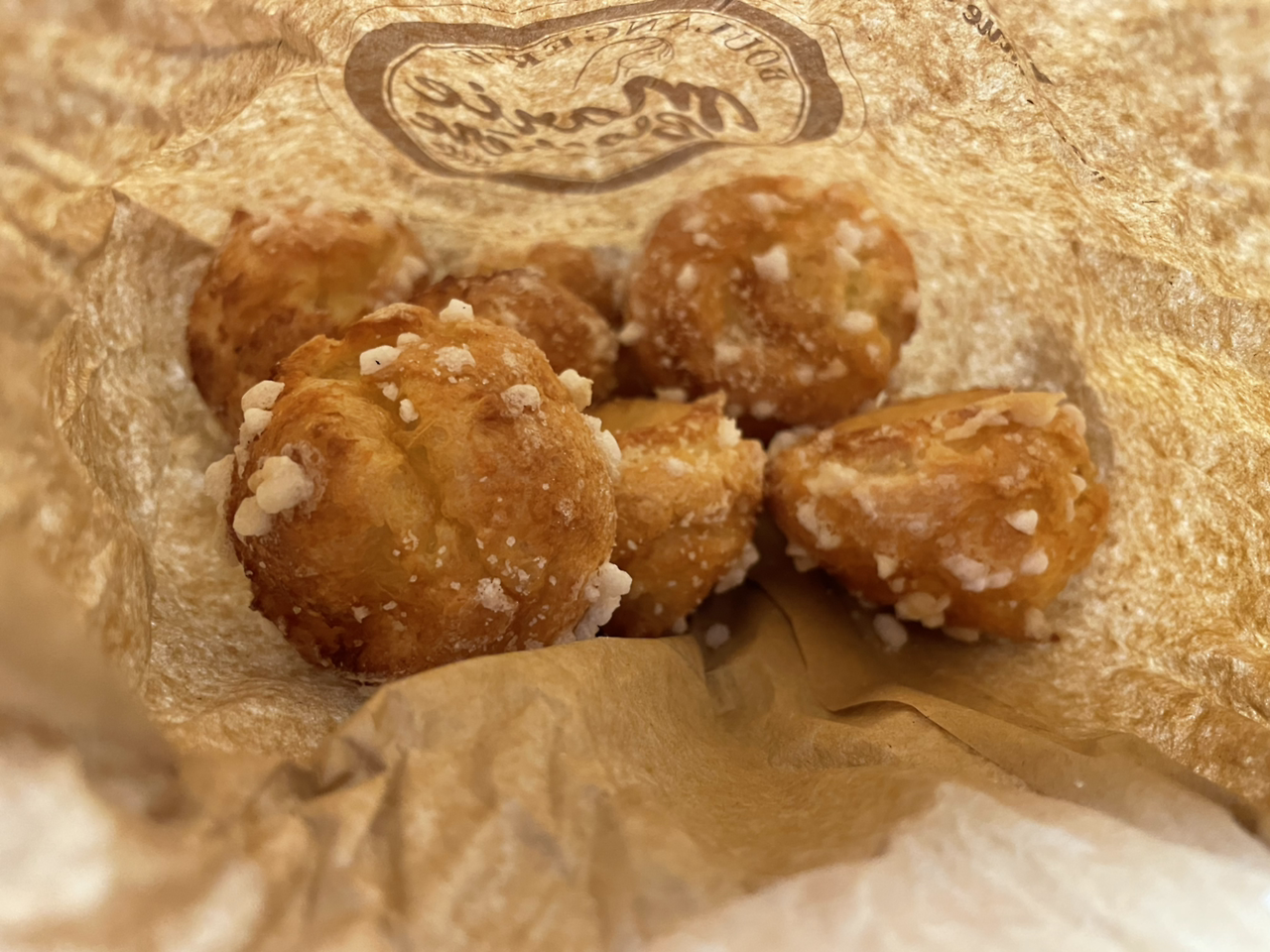 이 슈켓이라는게 우리가 흔히 알고 있는 슈크림 볼 같이 생겼는데, 가벼운 슈에 아무것도 넣지 않고 위에는 입자가 큰 설탕 덩어리를 뿌려서 만든다. 보기와는 달리 막상 먹어보면 특별한 게 없는데도 은근 중독되는 맛이 있다. 입안에서 사르륵 녹는 살짝 소금기와 버터맛이 도는 슈에 바삭하게 씹히는 설탕 덩어리. 재료가 재료이니만큼 칼로리가 엄청날 것 같아 (확인해보지는 않았지만) 평일에는 자제하고 주말에만 사 먹는 편이다.
