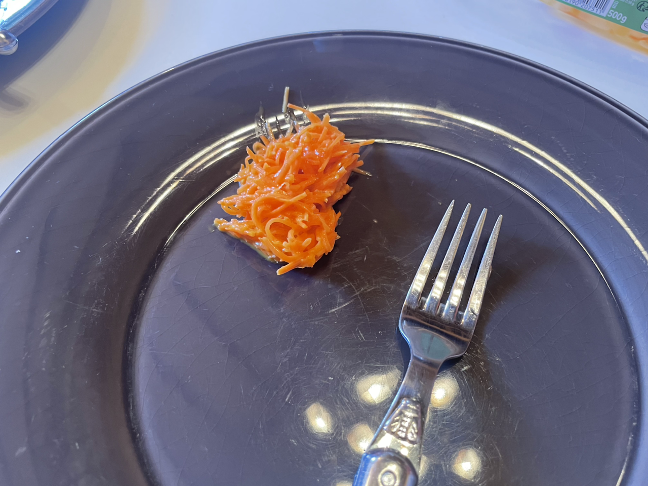 한 주는 식당에서 당근을 좀 많이 샀는지, 매일매일 당근이 다양한 방법으로 요리되어 나왔다. 구운 당근, 찐 당근, 데친 당근, 삶은 당근.. 정말 평생 먹을 당근을 한주에 다 먹은 것 같은데 하루는 같이 밥을 먹던 회사 동료가 접시 위에 당근을 보더니 “와 이 정도면 내가 일주일 동안 먹을 당근인데.. 남기긴 아까우니까 다 먹긴 하겠지만 너무한 거 아니냐”며 한숨을 쉬었다. 결국 우리는 꾸역꾸역 당근으로 배를 채움.