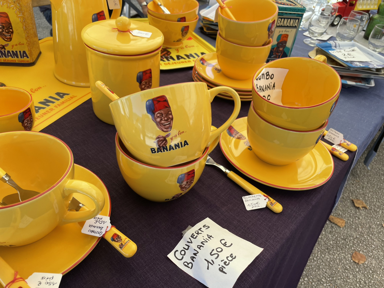 ‘바나니아’라고 하는 이 브랜드는 역사가 오래된 초콜릿 드링크를 만들던 회사인데 지금 보면 뜨악 스러울 정도로 인종차별적인 로고와 눈뜨고 보기 민망할 정도의 광고를 하던 곳으로 지금은 이 로고를 사용하지 않는다. 어느 집 다락에서 나온 건지 문 닫은 가게에서 인수한 건지 상태 좋은 굿즈들.