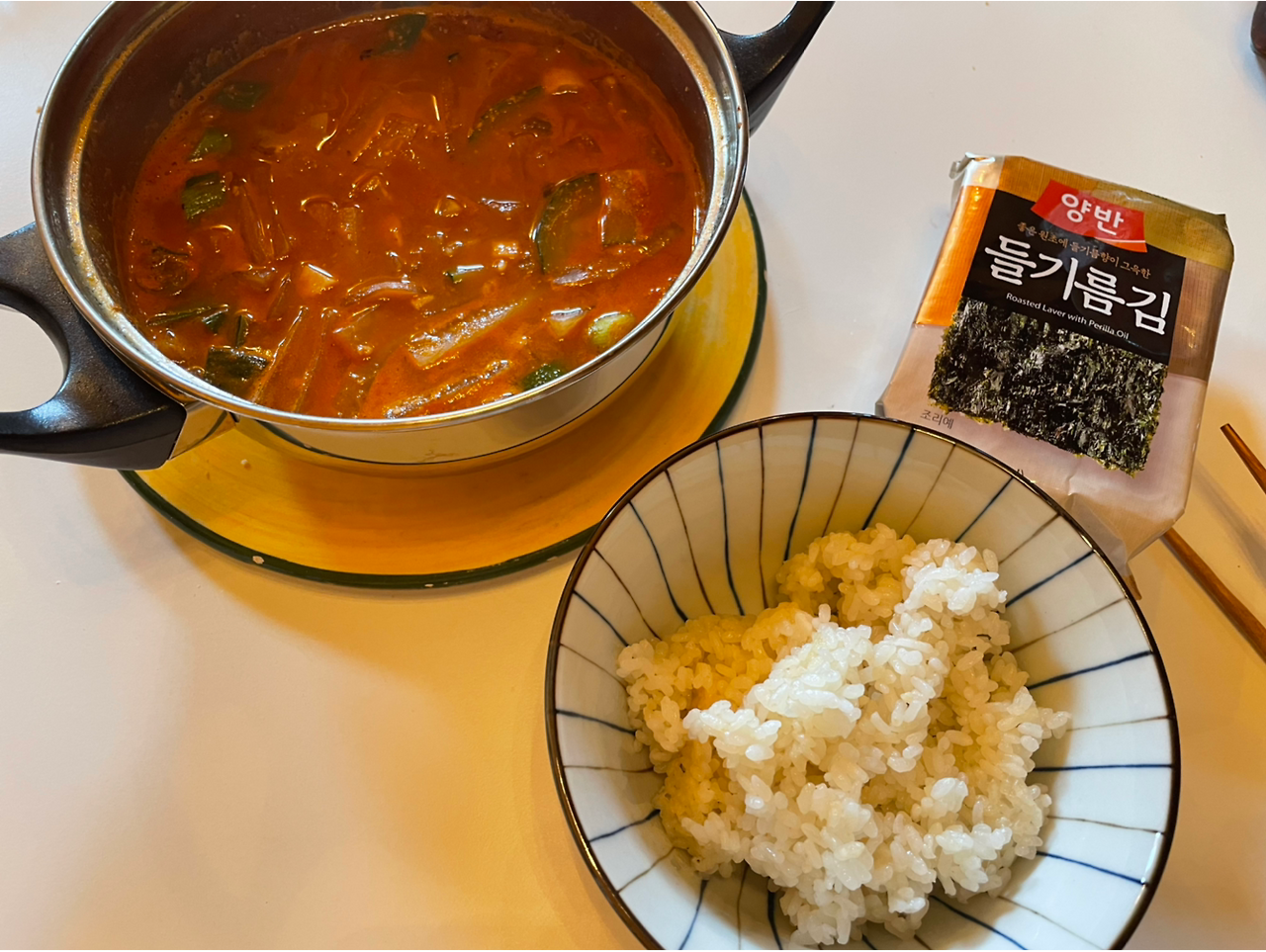 모처럼 입안에 매운맛이 들어가니 살 것 같다. 한식은 입은 즐거운데 요리하는 과정이 힘들긴 함. 찌개 하나에도 이렇게 많은 야채를 다듬어야 하다니 거기에 밥도 해야 하고 (그래도 밥은 밥솥이 한다). 찌개 하나 하고 뻗어서 다른 밑반찬 만들 생각은 하지도 못했다.