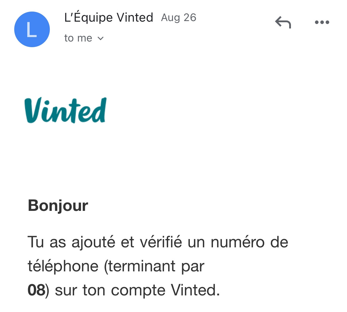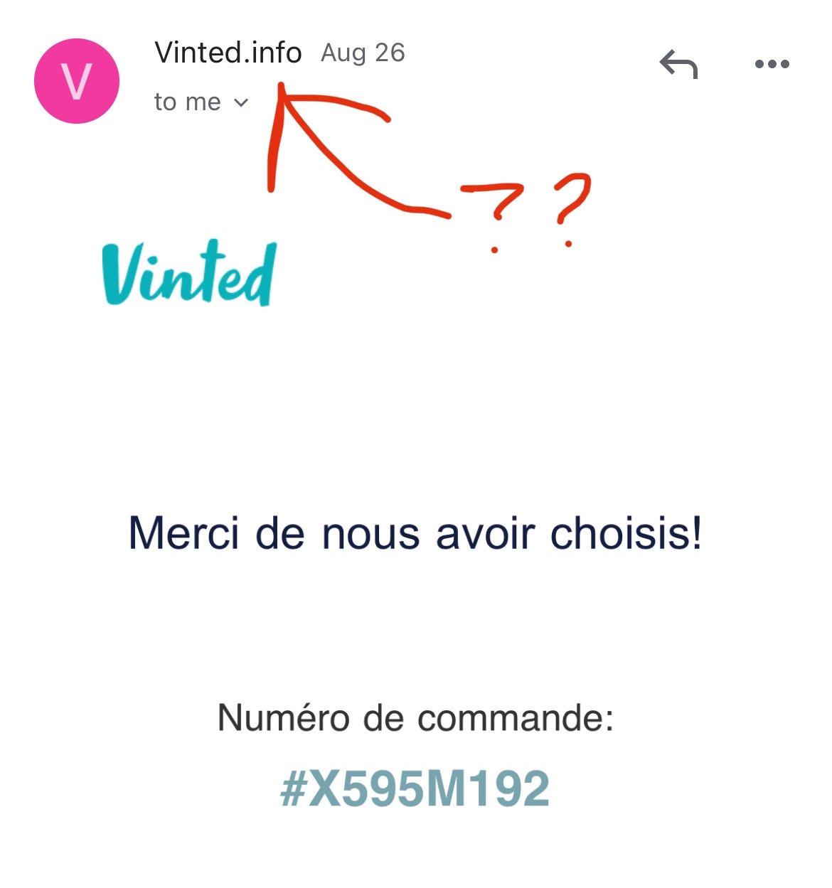 vinted와 굉장히 흡사하게 만든 이메일이었는데 로고 색상이 미묘하게 달랐고, 보낸 사람 이메일 주소도 나중에 보니 이상했다.
