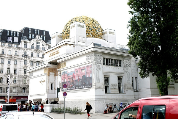 비엔나의 카를플라츠 지하철 주변에는 제체시온(분리파) 홀(Secession)이라는 독특한 건물이 있어. 제체시온은 1897년 4월 3일 빈의 전시관인 퀸스틀러하우스(Künstlerhaus)의 보수주의 성향에 불만을 가진 예술가들이 퀸스틀러하우스를 탈퇴하면서 결성된 것이 빈 분리파야. 위에서 우리가 알아보았던 클림트, 에곤 쉴레 가 대표적이지. 회화, 조각, 공예, 건축 등의 여러 예술가들이 참가했고, 화가 구스타프 클림트(G. Klimt, 1862~1918)가 초대회장이었어. 이들의 활동 거점으로 삼기 위해 1898년, 당대의 유명 건축가인 오토 바그너(O. Wagner, 1841~1918)의 제자인 건축가 요제프 마리아 올브리히(Joseph Maria Olbrich, 1867~1908)가 설계한 전시관이 제체시온이라는 건물인 셈이지.