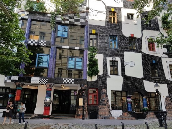 200미터 정도 떨어진 곳에는 훈데르트바서 하우스도 있어. 각 주택의 규모는 30~150㎡로 다양하고 바닥, 벽, 창문, 계단, 손잡이 등까지 각양각색이지. 안으로 들어가서 확인을 할 수는 없었지만 겉으로 볼 수 있는 창틀만으로도 그 변화무쌍함을 알 수 있어. 각자 다른 모습의 작은 덩어리들이 모여서 하나의 생명체를 이루듯 인간적인 건축이지. 자연과 인간의 공존을 중시한 훈데르트바서는 개별적인 녹지공간이 없는 서민용 공동주택에서 가능한 한 자연과 가까이하도록 배려했어. 그래서 집 주변과 옥상은 물론이고 창가, 테라스 등 공간마다 화초들이 자라고 있지. 개인적인 파티나 휴식을 취하도록 윈터가든도 두었지. 훈데르트바서는 그는 건축 콘셉트를 설명하면서 “인간은 세 겹의 피부를 갖고 있다. 하나는 실제 피부, 두 번째는 의복이고 세 번째 피부는 그가 살아가는 거주지다. 세 개의 피부는 지속적으로 바뀌어야 하고 새로워져야 하고 자라야 한다. 그렇지 않으며 생물체는 살아갈 수 없다”면서 거주자들이 외벽과 내벽 어디든 손이 닿는 곳은 원하는 대로 장식하고 바꿀 수 있는 자유가 있다고 했어. 하지만 지금까지 누구도 그의 말을 따르지 않고 훈데르트바서의 작품을 원형대로 보존하고 있는 게 참 아이러니야.