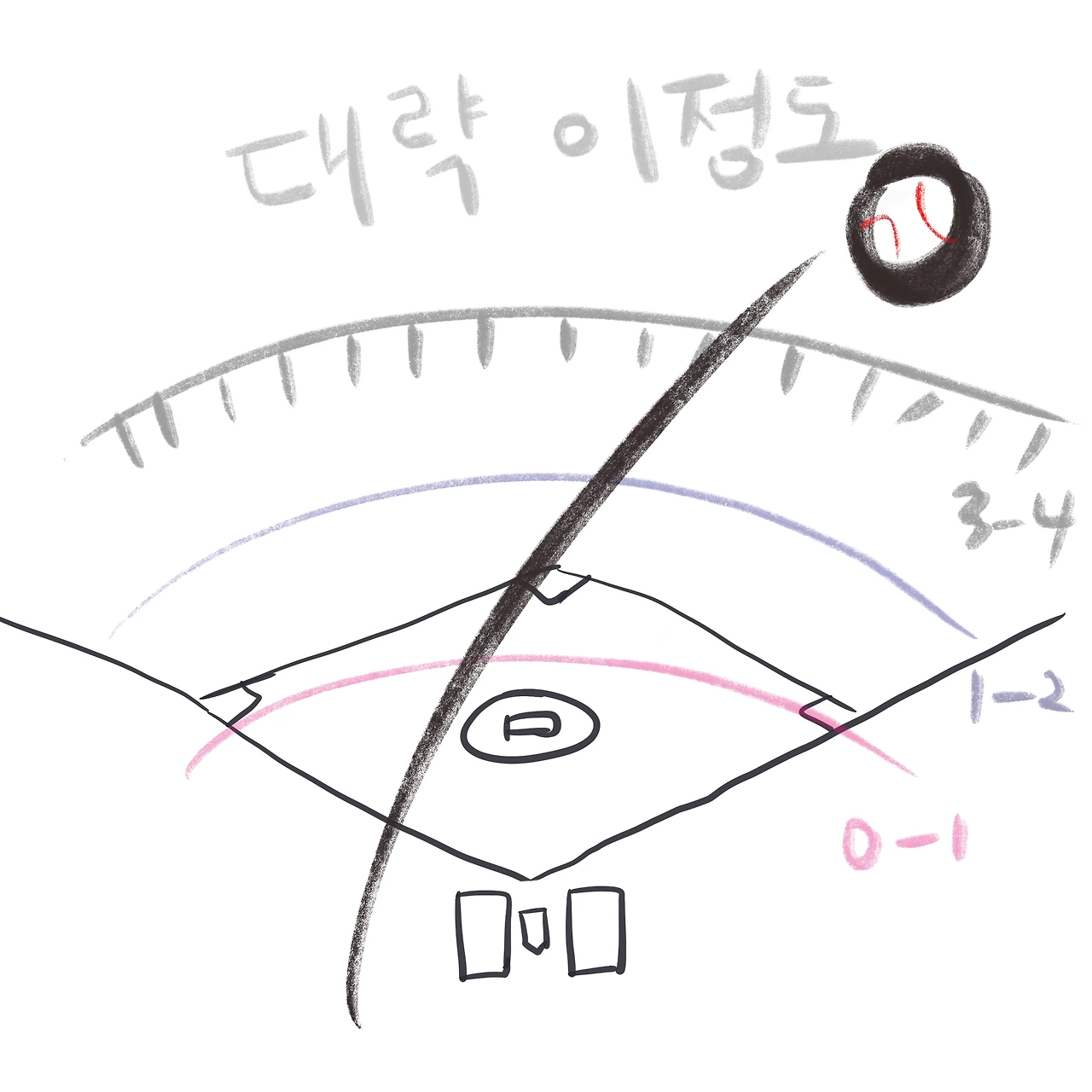 홈런은 타자가 친 공이 부채꼴 안 담장을 넘어가는 경우를 말합니다.