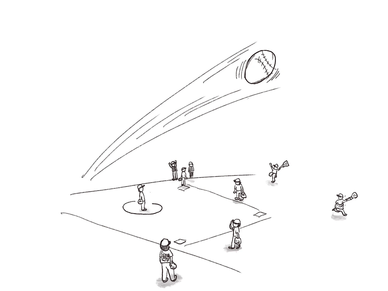 요는 4회 초가 그냥 4회 초가 아니라는 것. 경기는 프로야구로 치면 9회초, 끄트머리에 접어든 것이다. 7-8번 타자들의 활약으로 1, 2루를 메웠다. 다음 타자인 9번 타자 희생번트를 시도하다가 공을 띄우고 말았다. 번트라는게 보는 사람은 쉬운데 하는 사람은 쉽지가 않다. 허망하게 포수 위로 높게 떠오른 플라이볼(캐처플라이)로 아웃. 그 허망함을 만회하기라도 하듯 1번 타자가 공을 잘 골라내서 사구로 출루. 2번 타자의 강한 타구가 유격수 글러브로 빨려들어가면서 투 아웃. 주자는 만루 상황으로 이제 모 아니면 도다.