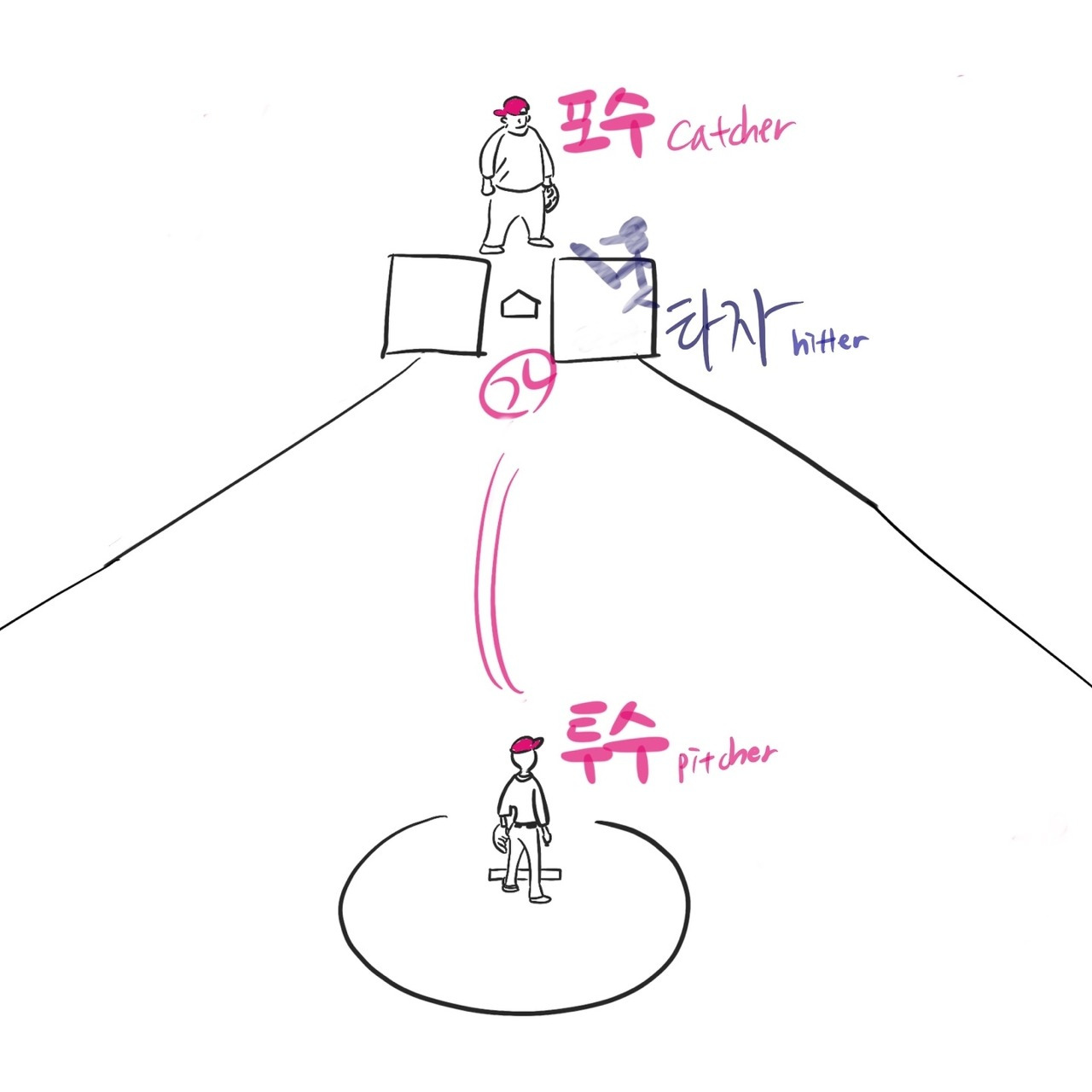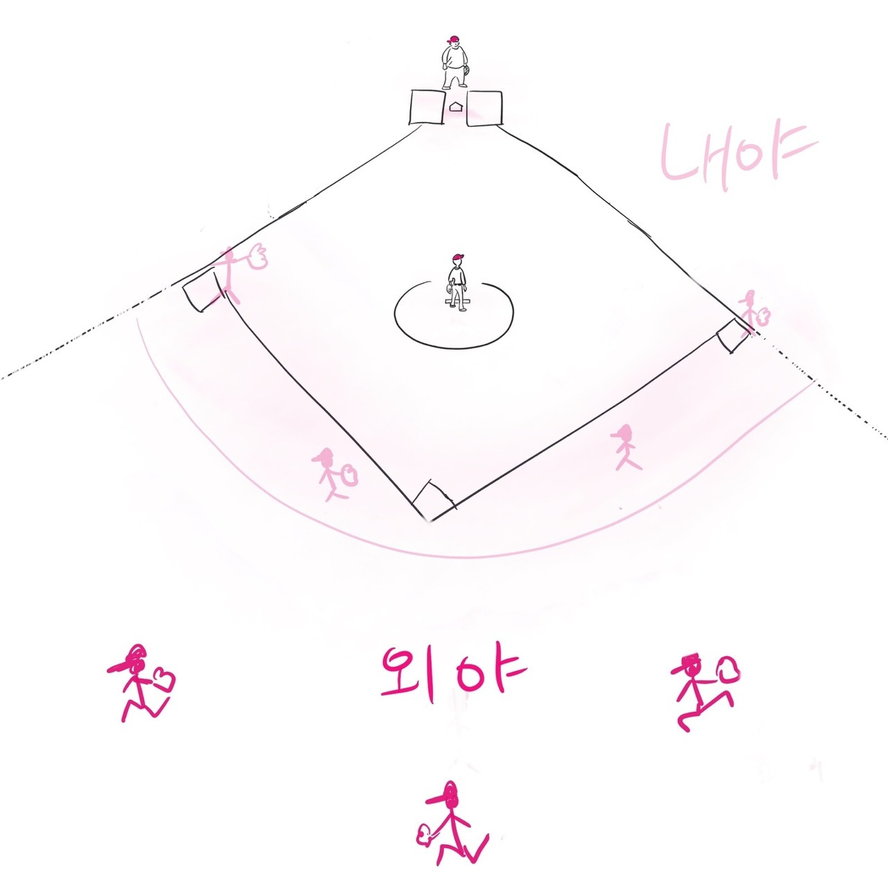 그리고 쳐도 부채꼴 바깥, 핑크색 영역에 공이 떨어지면 파울(=1스트라이크) 다.