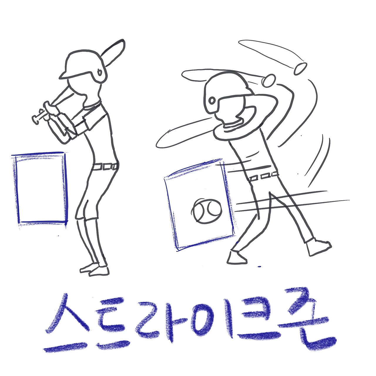 삼진 아웃이라고 한다. 마지막 스트라이크는 타자가 지켜보거나, 헛스윙을 해야한다.