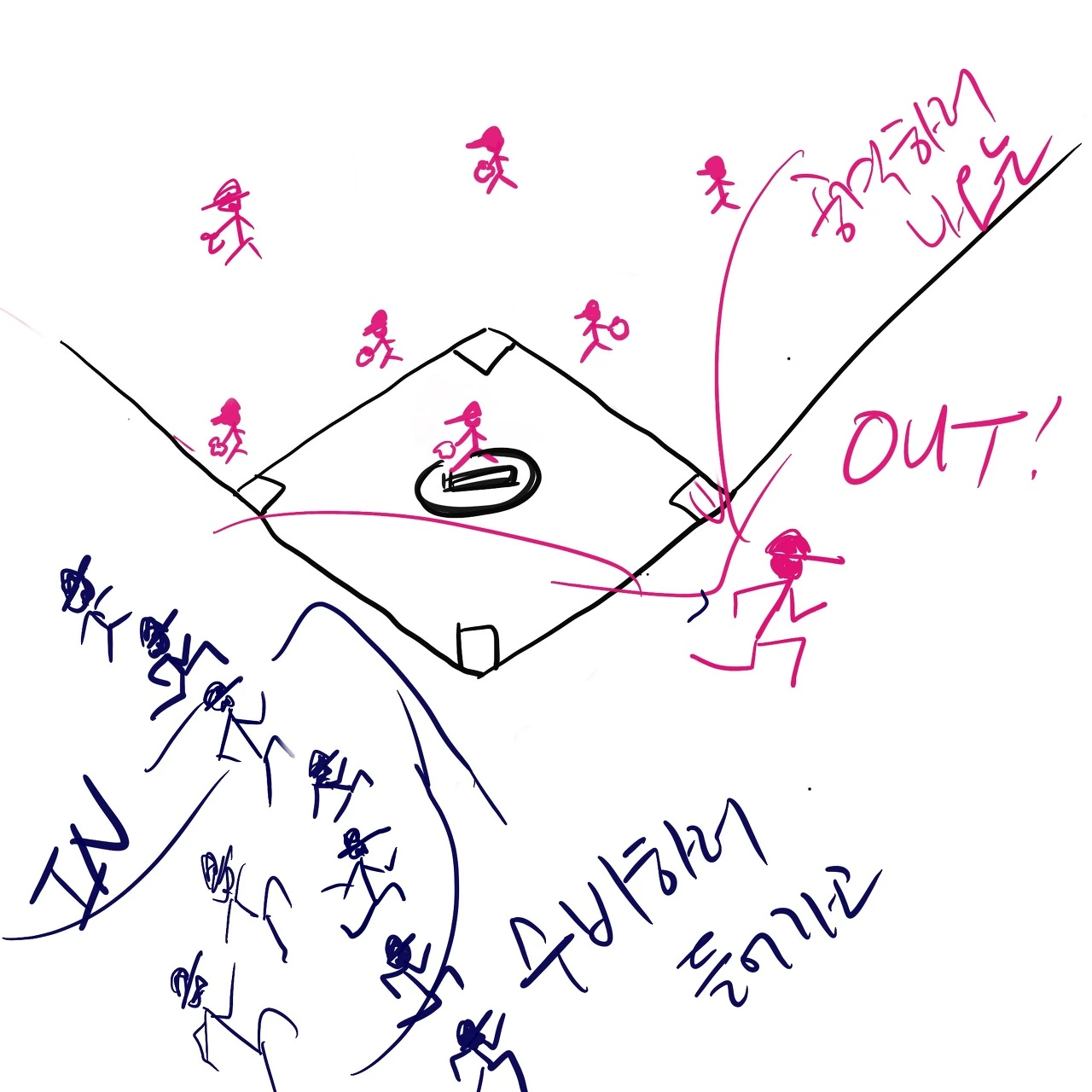 3번째 아웃이 되면 공격은 완전 끝. 앞에서 말한 공수교대를 해야한다.
