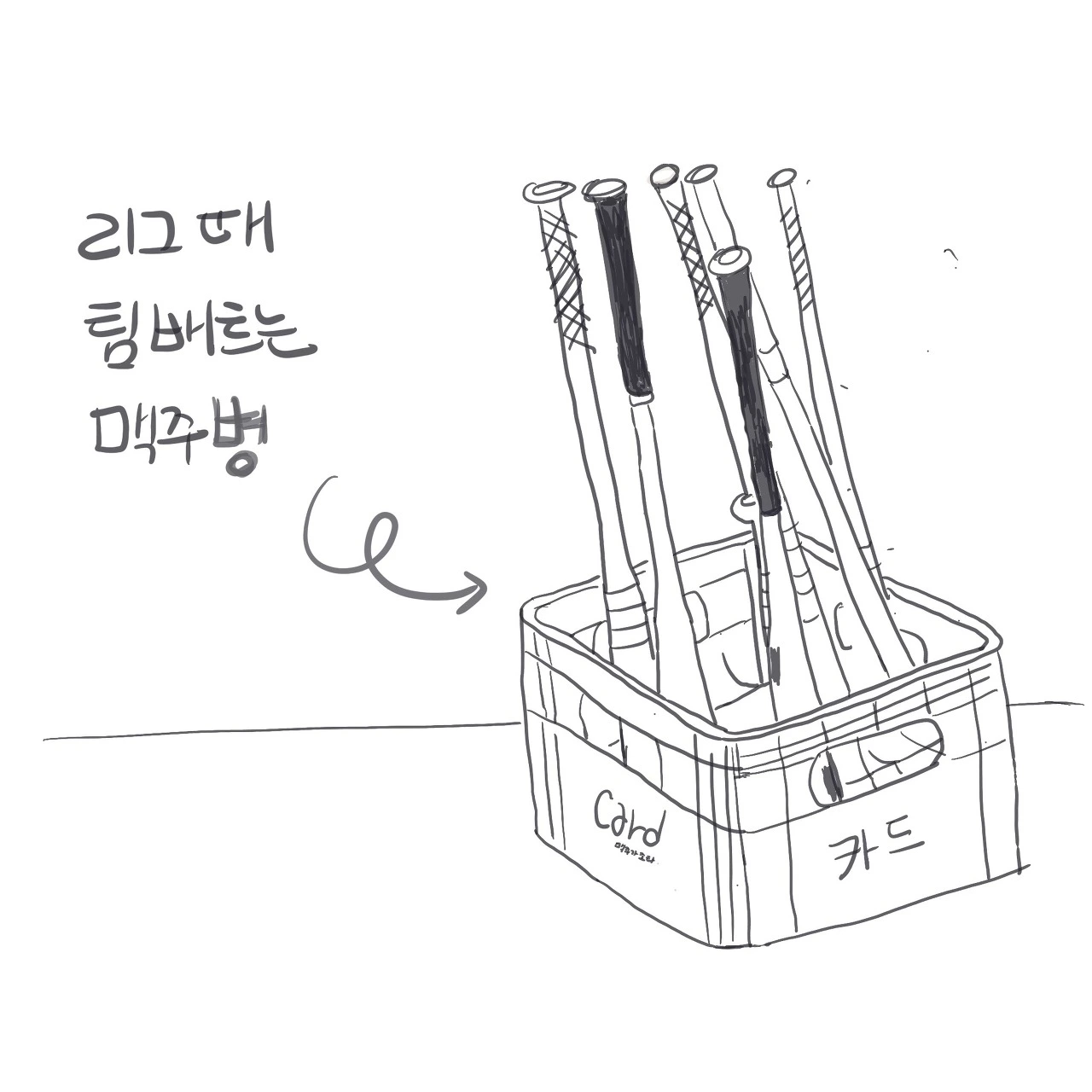 전체 수비수가 들어오고, 전부 타자 복장으로 갈아 입고 나온다.