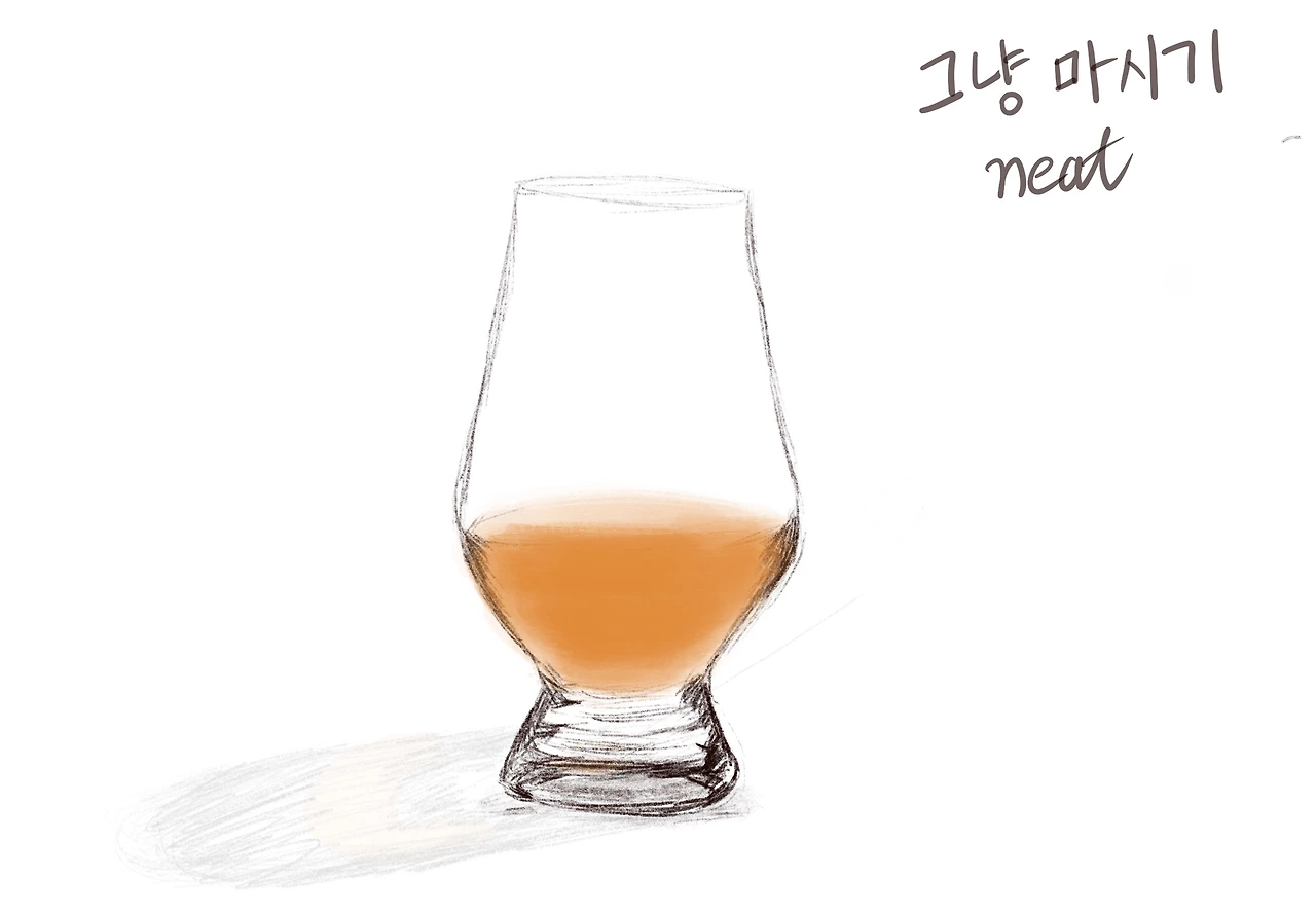 “위스키에는 물을 타 먹지 않는다. 위스키에는 얼음을 사용하지 않는다. 위스키는 그저 있는 대로 (니트 neat) 마시는 게 최고다.”