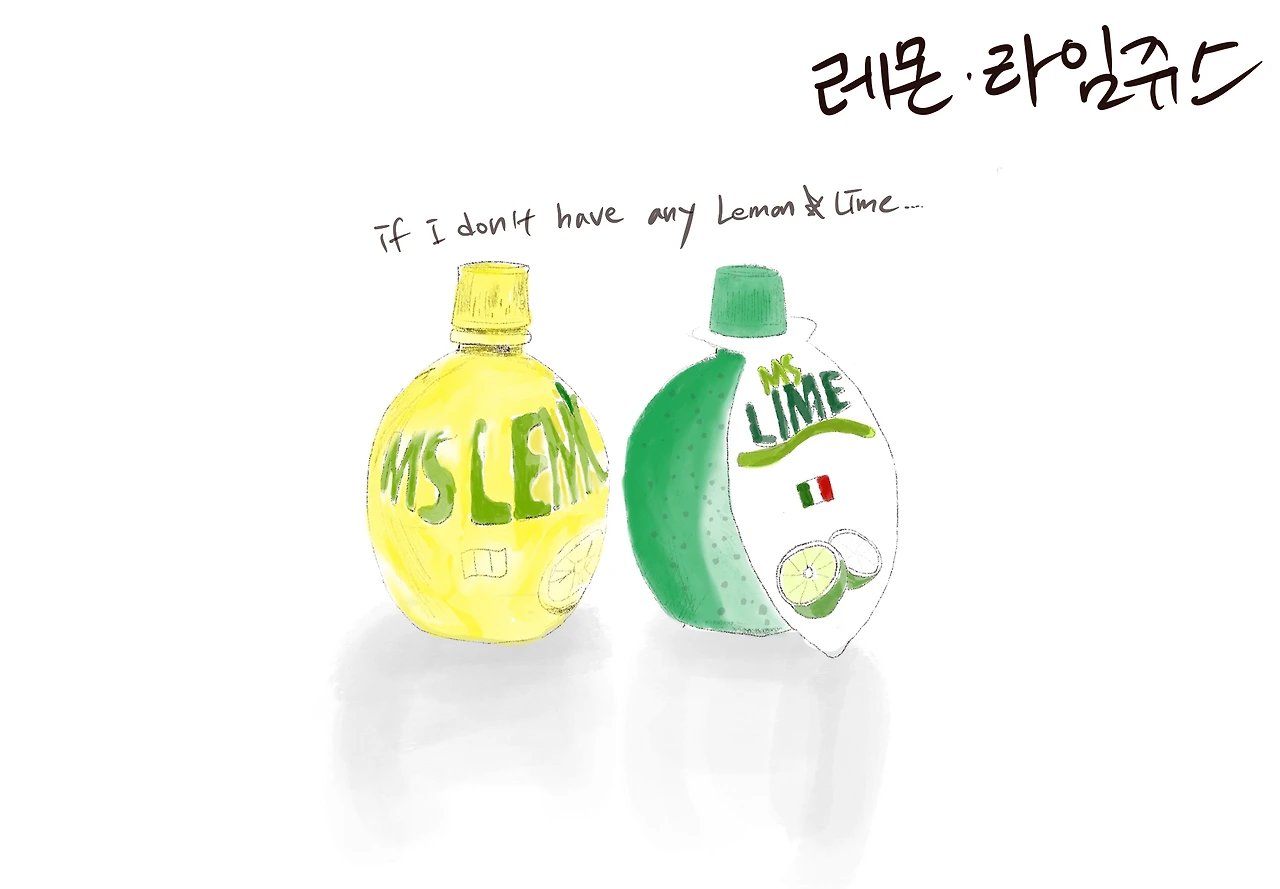 스퀴저로 비싼 라임과 레몬을 계속 짜지 않고도 유사한 맛을 만들어낸다. 동네 마트 수입코너 어디에나 있지만, 어디에 쓰는지 전혀 알 수 없었던 동그란 과일 모양의 소스통. 결국 한 친구에게 받아서 잘 쓰고 있다. 레몬이 조금 모자란 긴급한 순간, 나를 구해주는 미원 같은 존재다.