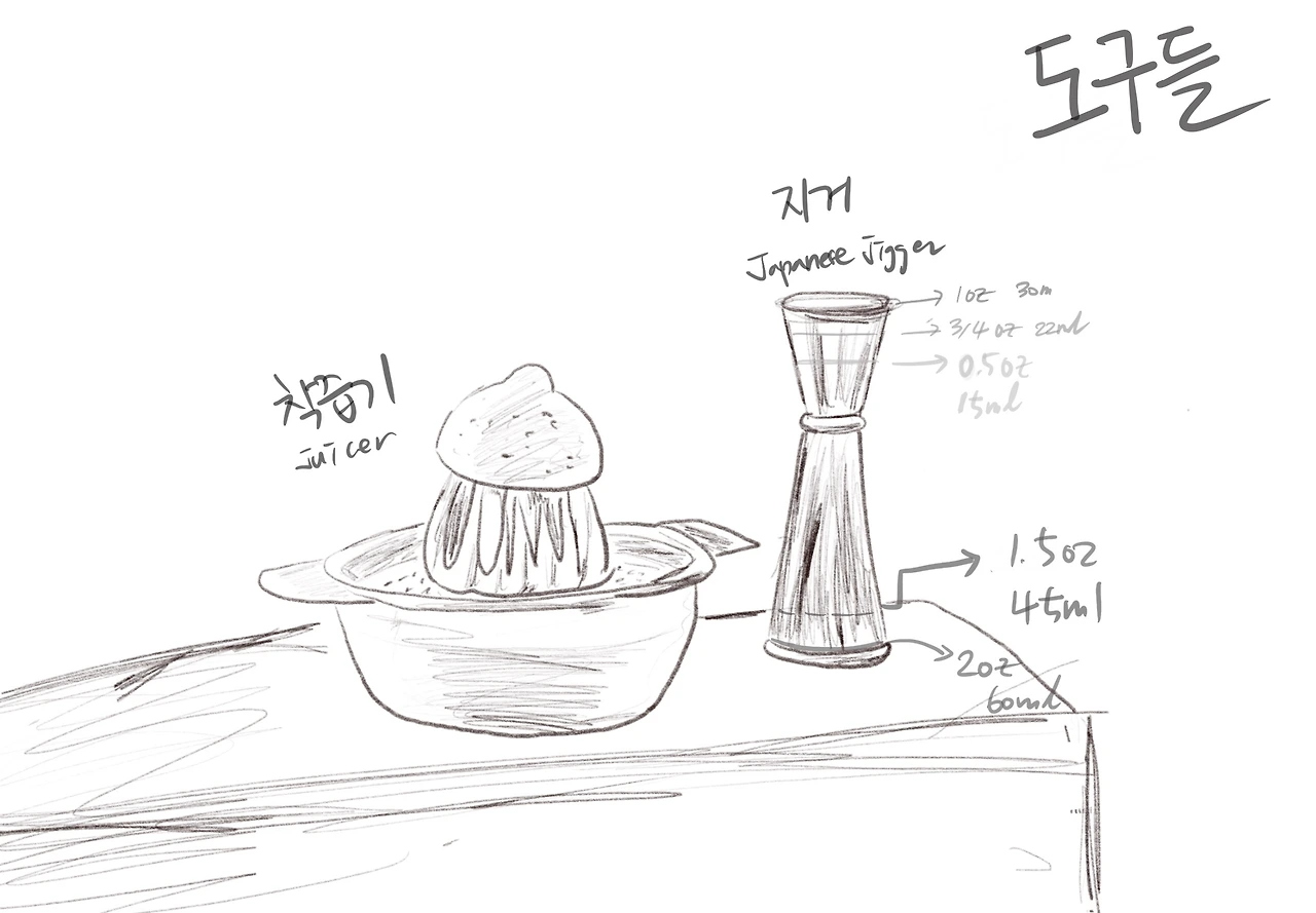 라임을 여러 조각으로 잘라 머들러로 빻는 방법도 있다. 그렇지만 이게 여간 힘이 드는 게 아니다. 게다가 때때로 스트레이너(채 같은)로 걸러줘야 하는 때가 있다. 그 과정이 재미라면 재미지만 번거롭다. 집에는 오렌지용 스퀴저가 있어서 유용했다. 오렌지용이라 뭔가 레몬과 라임에는 딱 맞지 않아서 면적이 많이 남는다. 그래도 기능에는 전혀 문제가 없다. 가위 모양으로 된 라임과 레몬 사이즈 스퀴저도 있다. 레트로 한 매력은 떨어지지만 손쉽고 편해 보인다. 둘 다 있으면 레몬과 라임 술을 같이 동시에 만들 수 있을 것 같다.
