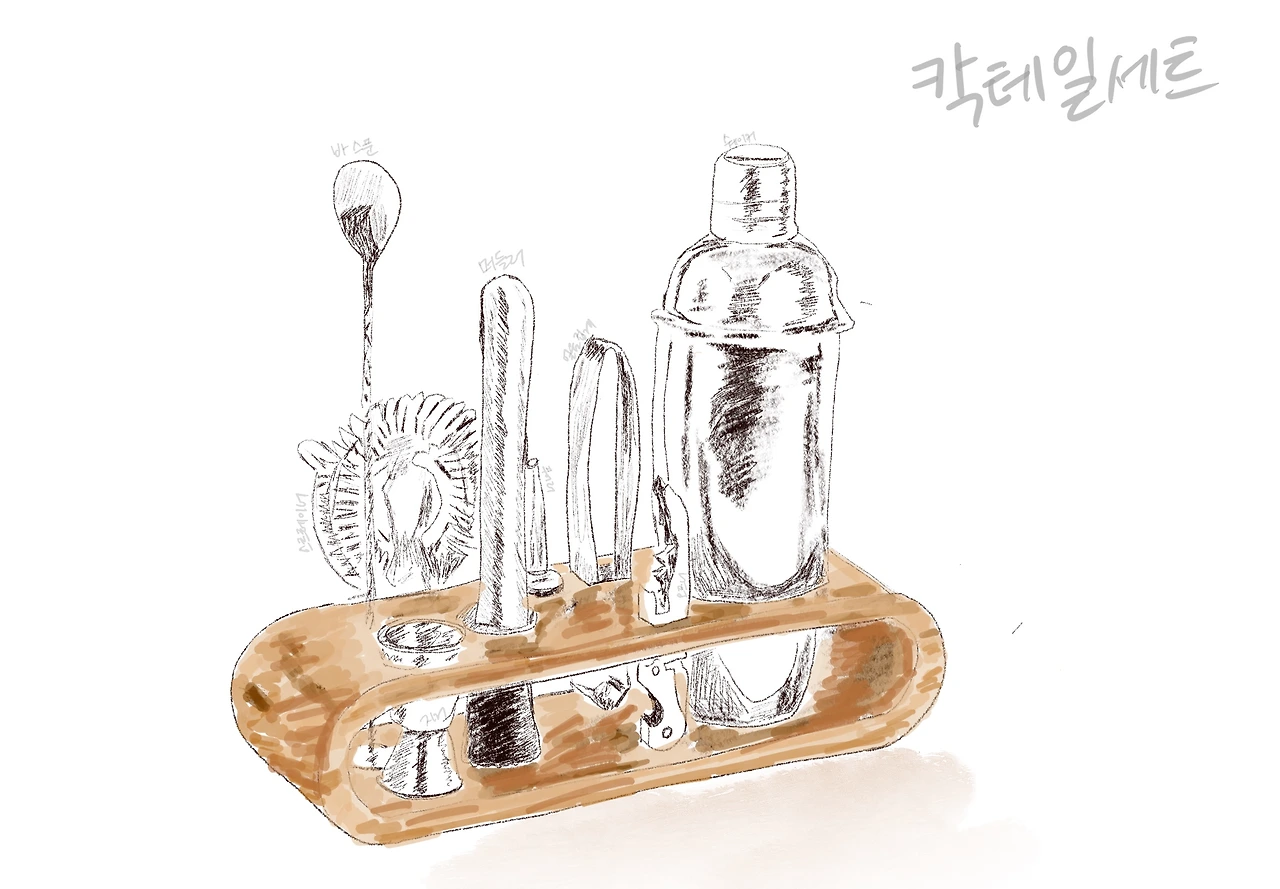 지난한 성공과 실패의 연속의 시간이었다. 술의 세계에서 만큼은 거기까지 가지 않겠노라고 다짐했다. 하지만 나는 병마를 이겨내지 못했다. 친구들 그 누구도 가지고 있지 않은, 2만 원짜리 8종 칵테일 스타터 세트를 사고서 (조주사 자격증 딸 사람들에게 좋은 것이라 적혀있다.) 술에 입문을 시작했다. 이 스타터 세트는 그래도 50% 성공했다. 들어있는 8종의 모든 제품을 한 번씩 사용해보기는 했다. 각각이 어떤 기능을 하는지 알게 된 것이다. 취미 삼아 이것저것 레시피를 만들며, 재미로 만져볼 수 있었다.