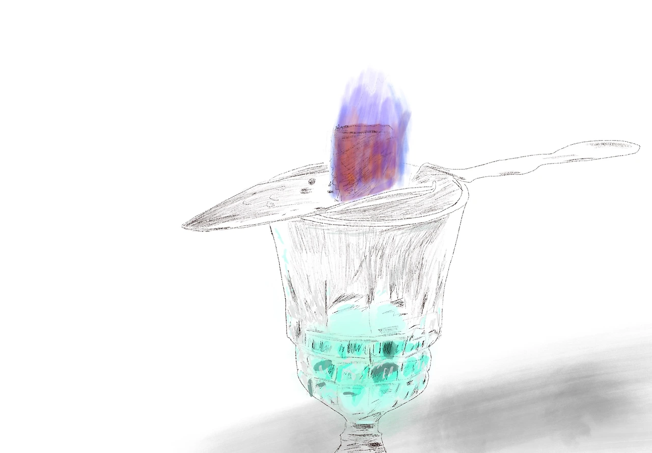 압생트를 마실 때 이런 방식으로 마시는 방법을 본 적이 있는데, 아무래도 이 녹색 음료는 고흐로 다시 태어나지 않는 이상 마시기 어렵지 않을까?