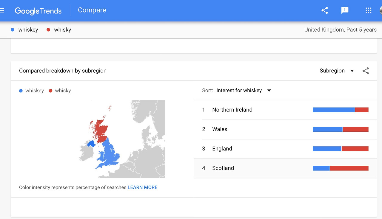 그레이트 브리튼 지역은 지리적 명칭으로 스코틀랜드와 잉글랜드를 합친 섬 지역을 뜻하고 이 때는 북 아일랜드 지역은 제외한다. 그레이트 브리튼으로 표기하게 되면, 대부분을 스코틀랜드가 차지하고 있는 위스키이지만 어쩐지 잉글랜드가 껴들어 오는 모양새가 돼버린다. 그러다 보니 스코틀랜드의 자랑인 위스키를 굳이 ‘그레이트 브리튼 위스키’로 표기하는 만행은 그들 손으로 할 수 없었던 것이 아닐까 생각한다. 그래서 지금의 '스카치위스키'가 된 것이겠지.