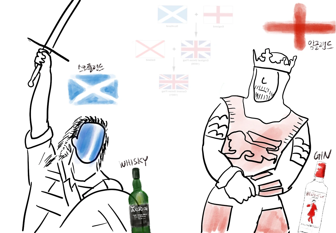 그 깊은 감정의 골을 이해하려면 오래된 술과 함께 케케묵은 영국의 역사를 연구해볼 필요가 있다. 스코틀랜드는 잉글랜드에게 정복당한 나라다. 그리고 잉글랜드에게 정복한 아일랜드 일부, 오래전에 정복한 웨일스까지 합쳐서 현재는 영국 아니 그레이트 브리튼과 북 아일랜드 영연방*United Kingdom of Great Britain and Northern Ireland으로 부른다. 모두 정복자 잉글랜드에게 당한 나라들인 것이다.