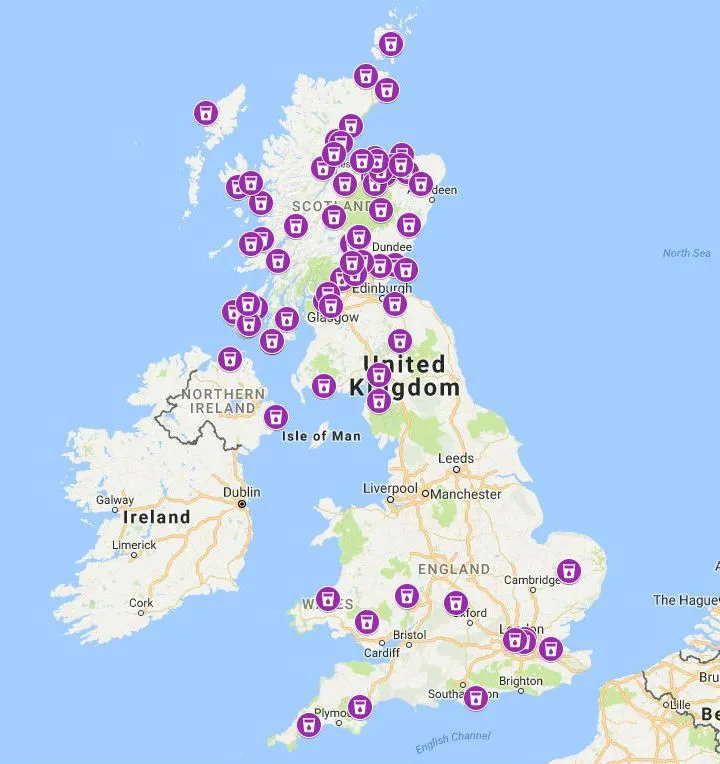 그렇다. 위스키는 “스카치위스키”라는 단어를 가장 많이 사용된다. 생각해보면 영국으로 써놓고 유케이, 유나이티드 킹덤 위스키라는 단어를 들어본 적이 없다. 그 이유는 ‘정확하게’는 모르겠다. 하지만 실제로 스카치 (Scotch) 위스키가 영국 내에서 압도적으로 많이 그리고 다양하게 생산된다. 증류소 수도 압도적이다. 위스키 생산량을 기준으로 지도를 재편하면 이렇게 보일 정도다.