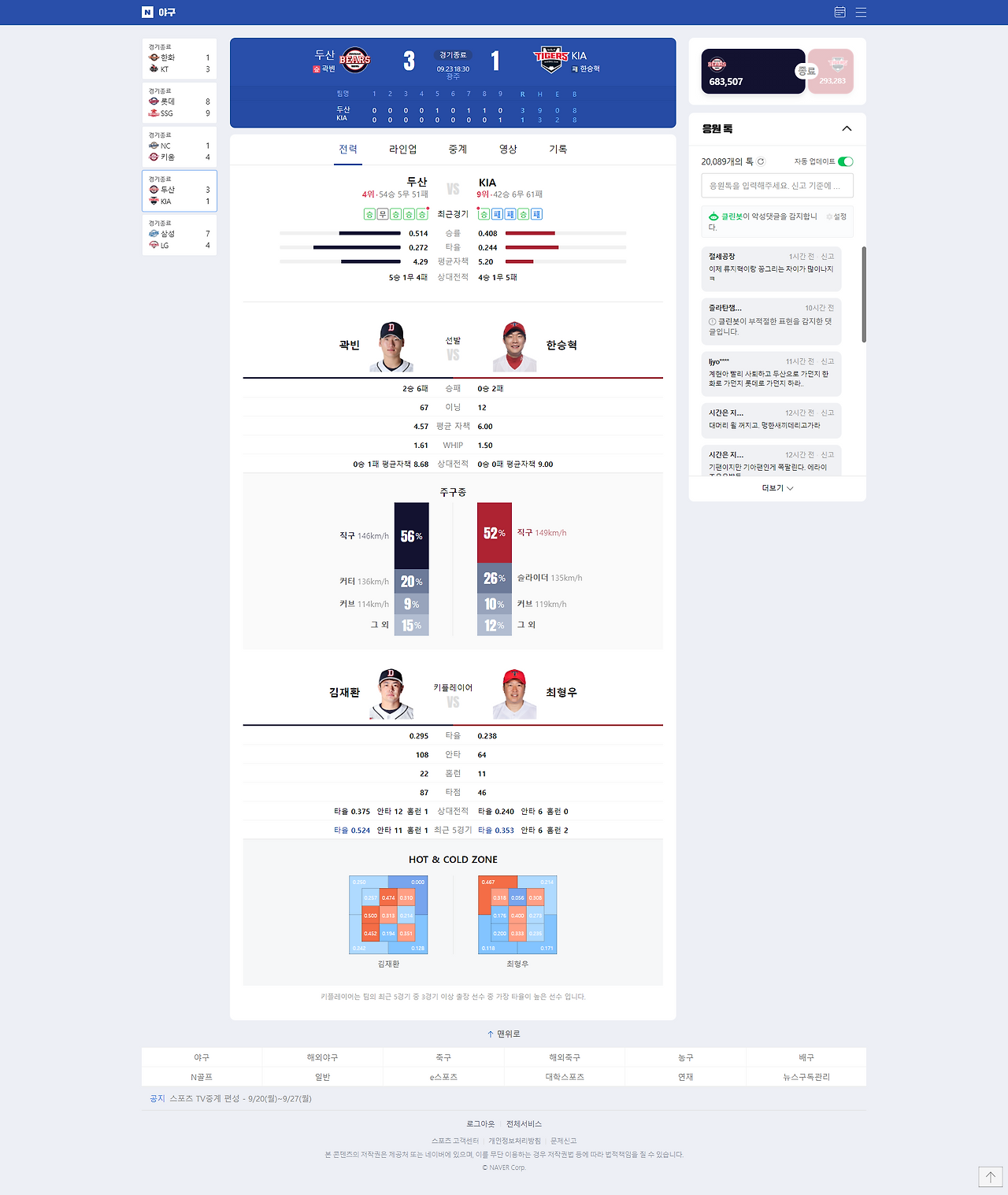 네이버 기록은 오랜 시간 동안 야구 기록을 입체적으로 볼 수 있게 발전했다. 투수가 주로 쓰는 무기를 알 수 있게 구종 비율을 보여주거나, 스트라이크 존 중에 어디를 자주 던지는지를 알 수 있도록 핫 앤 콜드존으로 표현한다거나 하는 식의 시도다. 타자 중에서도