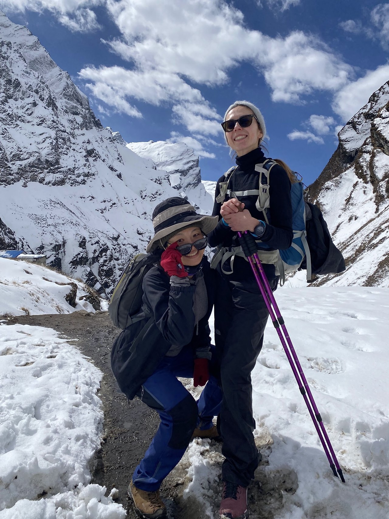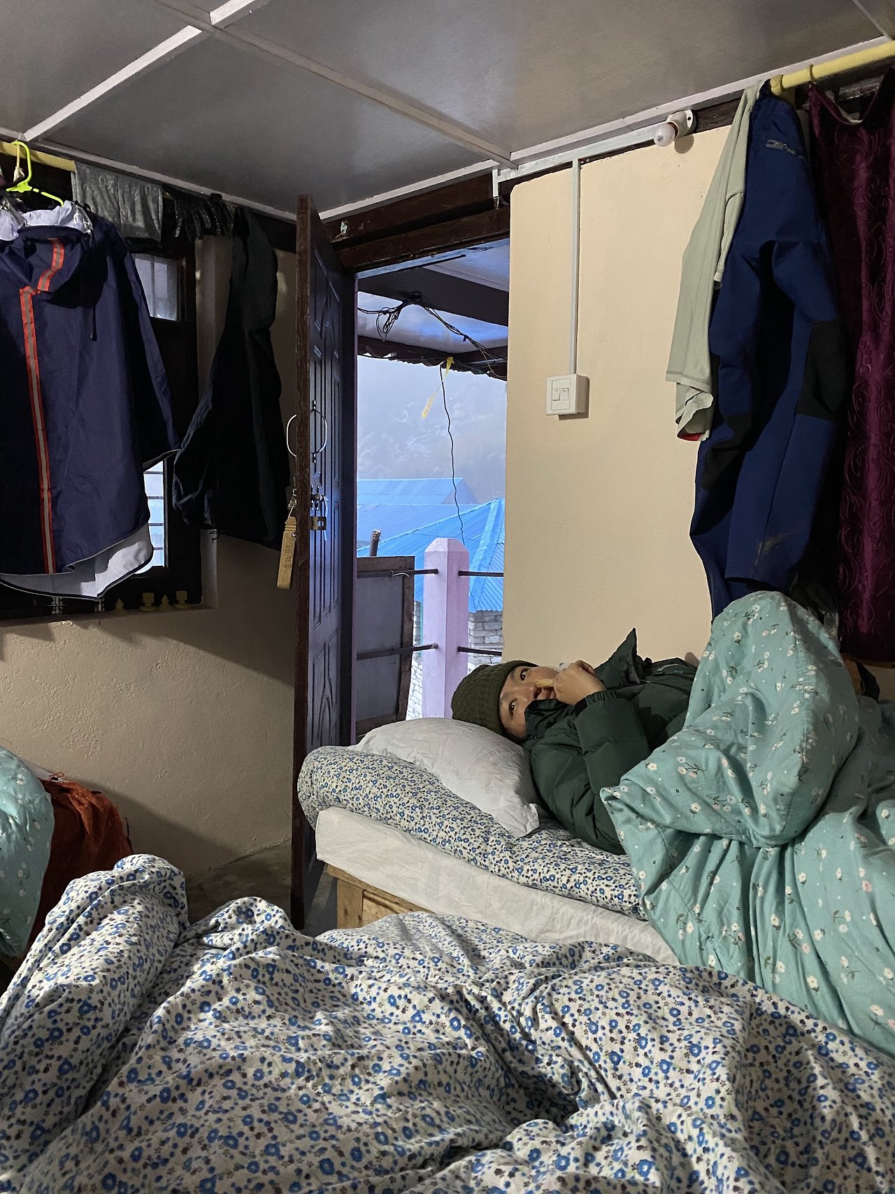 히말라야 산에서는 인터넷이나 통신이 터지지 않아서 숙소를 미리 예약할 수가 없다. 사람이 많으면 부엌에서 다 같이 매트 깔고 잔다고도 들었는데 여자 3명, 샤샤 아저씨 1명이 다 같은 방에서 자야 할 때도 있었다. 추워서 샤워도 못하니 로지에 도착하자마자 옷을 벗고 물티슈로 닦아 마른 옷으로 갈아입어야 했다. 추우면 부끄러움도 없다. 라리사는 침대를 고를 때마다 킴제이 옆에서 자야 잘 잔다며 내 자리를 맡아줬다. 식사를 할 때도 먹고 싶은 메뉴가 비슷해서 둘이 하나씩 주문해서 나눠먹었다. 다시 새로운 사람들과 산을 오르는 내게 라리사는 안식처이자 내가 돌보고 싶은 어여쁜 새였다. 라즈는 나중에 라리사가 없어도 내게 라리사 메뉴를 주문받았다. 내가 라리사 음료를 레몬진저로 시켜놓고서는 뭐 마실래? 물어보면 라리사가 레몬진저라고 말했다. 역시 통했다며 웃었다.