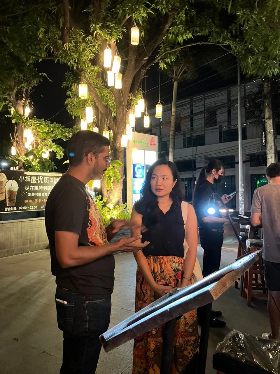 치앙마이에 얼마나 있을 건지 물었고 나는 네팔로 다시 돌아감을, 이전에 싱잉볼을 치앙마이에서 처음 접하고