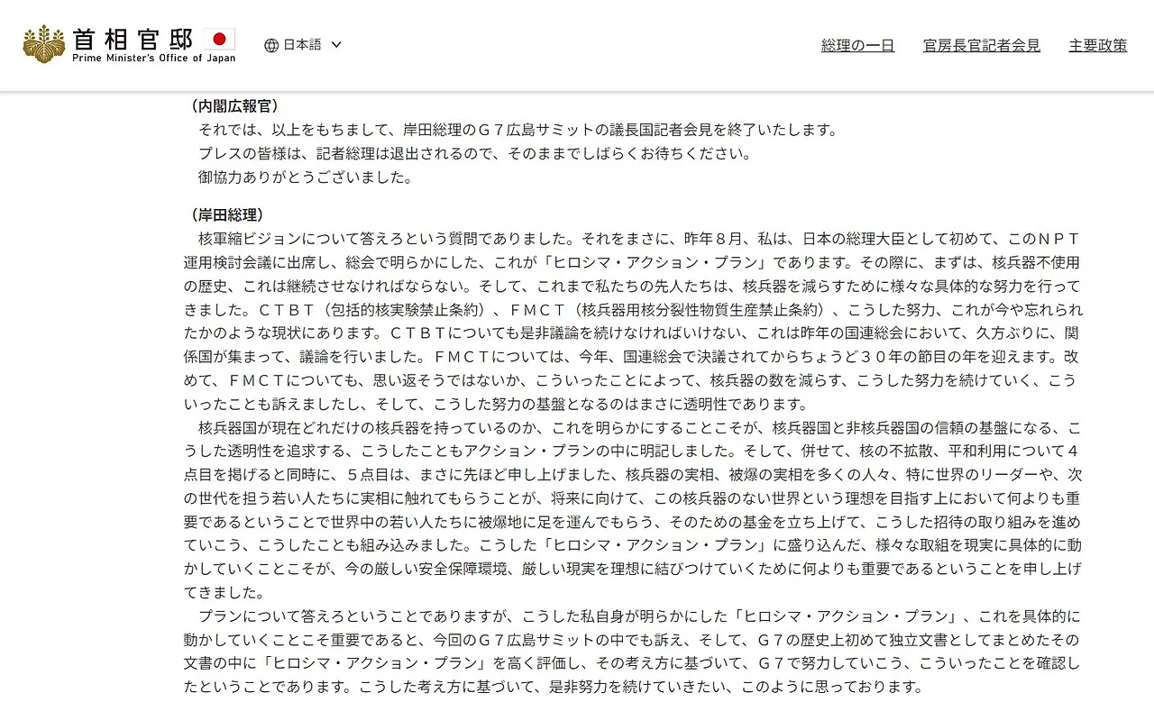 라고 기시다가 답하기 시작하더니 자신이 주창했던 '히로시마 액션 플랜'에 대해 설명하기 시작했다. (핵군축 문제는 필자가 말하고자 하는 저널리즘과는 무관한 내용이므로 언급하지 않는다)