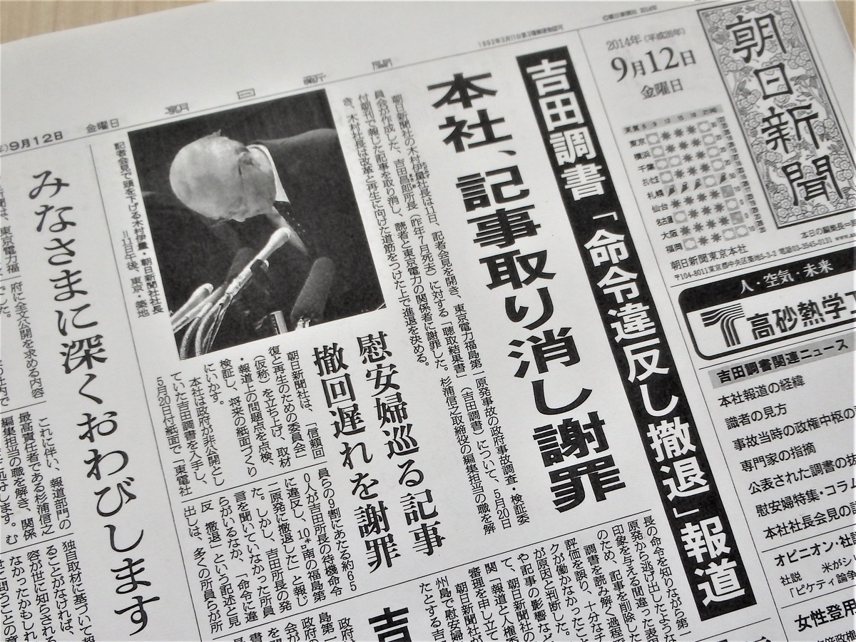 이렇게 아사히의 요시다 조서 보도는 '역사적인 특종'이라는 평가에서 처참한 '오보'로 전락하고 만다.