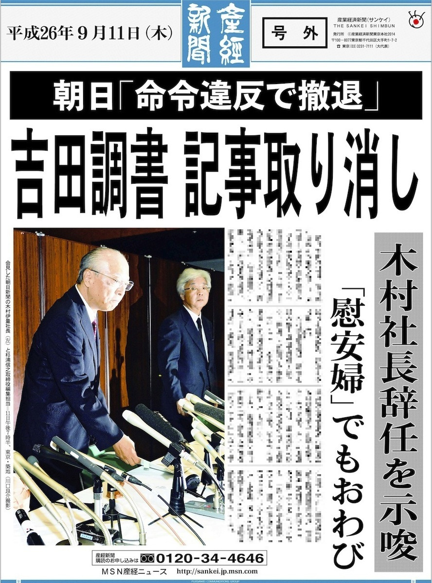 아사히신문의 요시다 조서 철회 기자회견에 관한 산케이신문의 호외