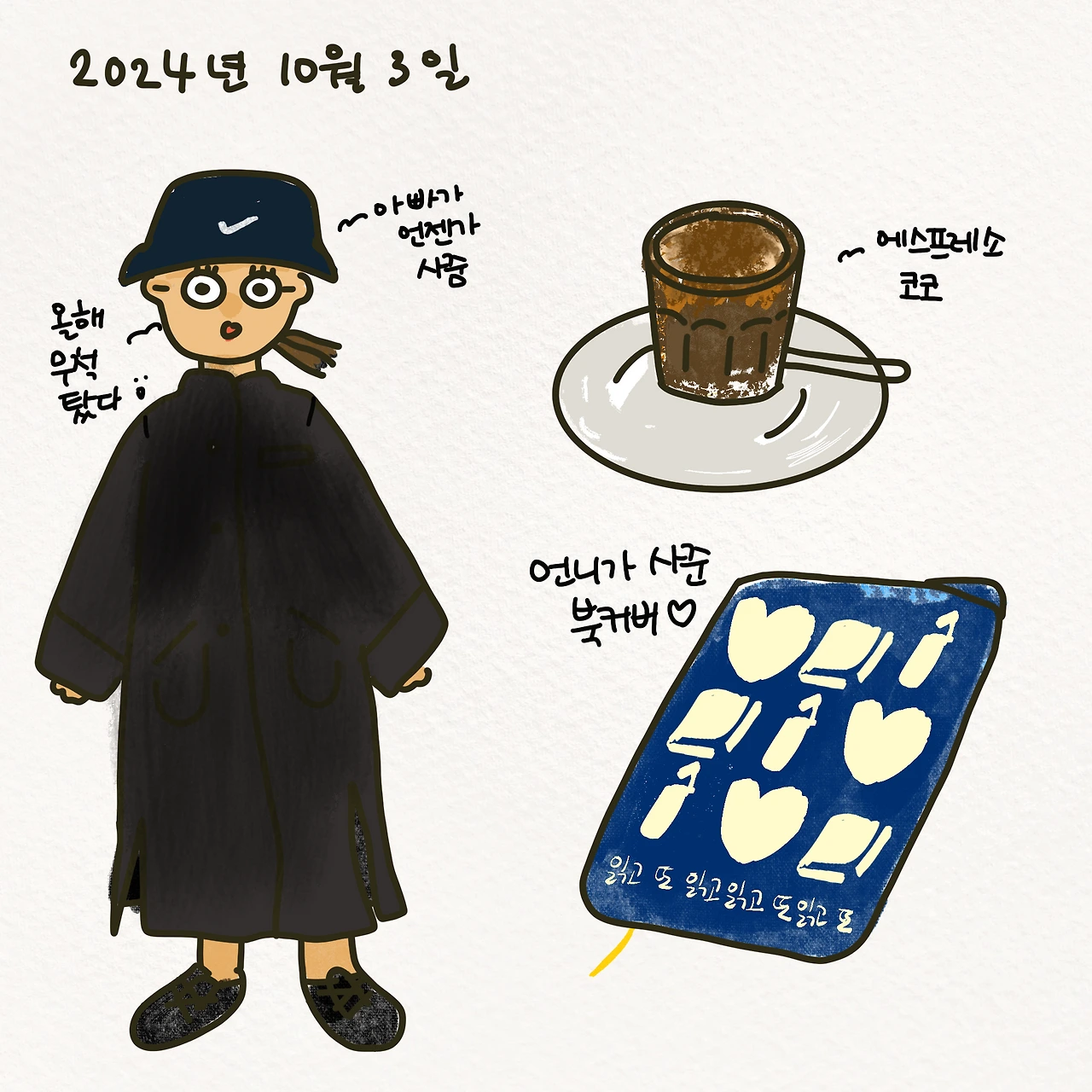 남색 나이키 벙거지 모자를 쓰고 검은 뷔스티에 원피스이 유니클로 검은색 카디건을 걸치고 검은색 야상을 입었다.운동화까지 검은색으로 맞추고 나면 <나홀로집에> 나오는 비둘기할머니 느낌이 난다. 일명 외로움 룩.