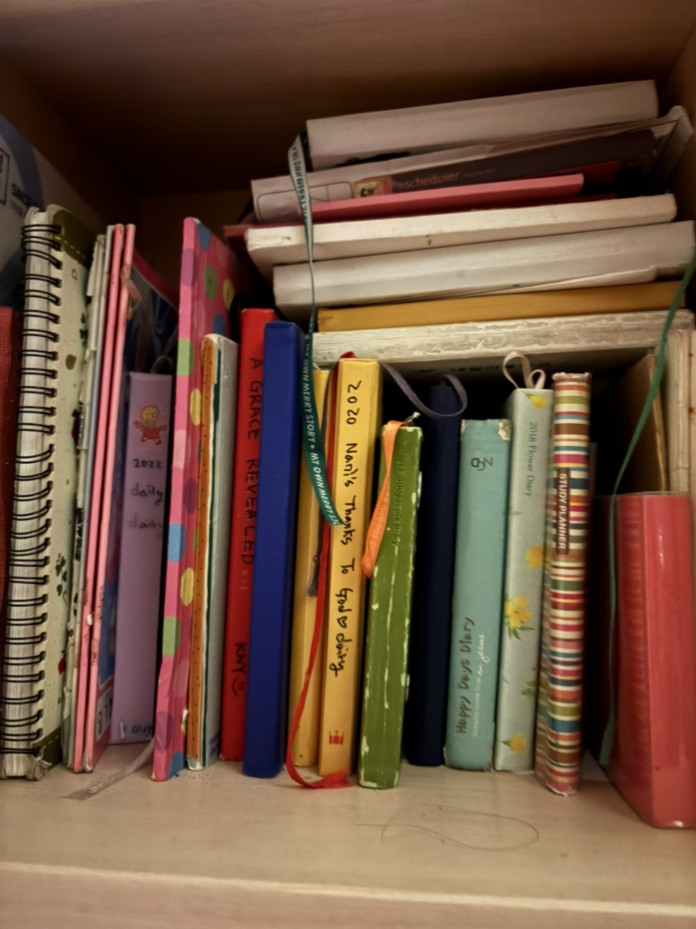 20살부터 매일 써와서 모양과 색깔이 다른 일기장이 가득하다. 책장 가장 높은 칸에 꽂아 두었다. 솔직해질수록 이번 해에 쓴 일기장은 태워야 하지 않나 고민된다.