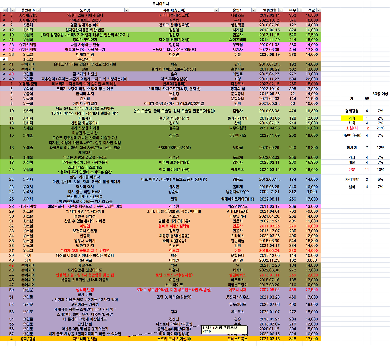 3번을 가장 먼저 준비했다. 만약 작년부터 기록하지 않았더라면 엄두가 안 났을 분량이다. 우선 읽었던 책들과 기록을 긁어모아 엑셀로 정리했다.