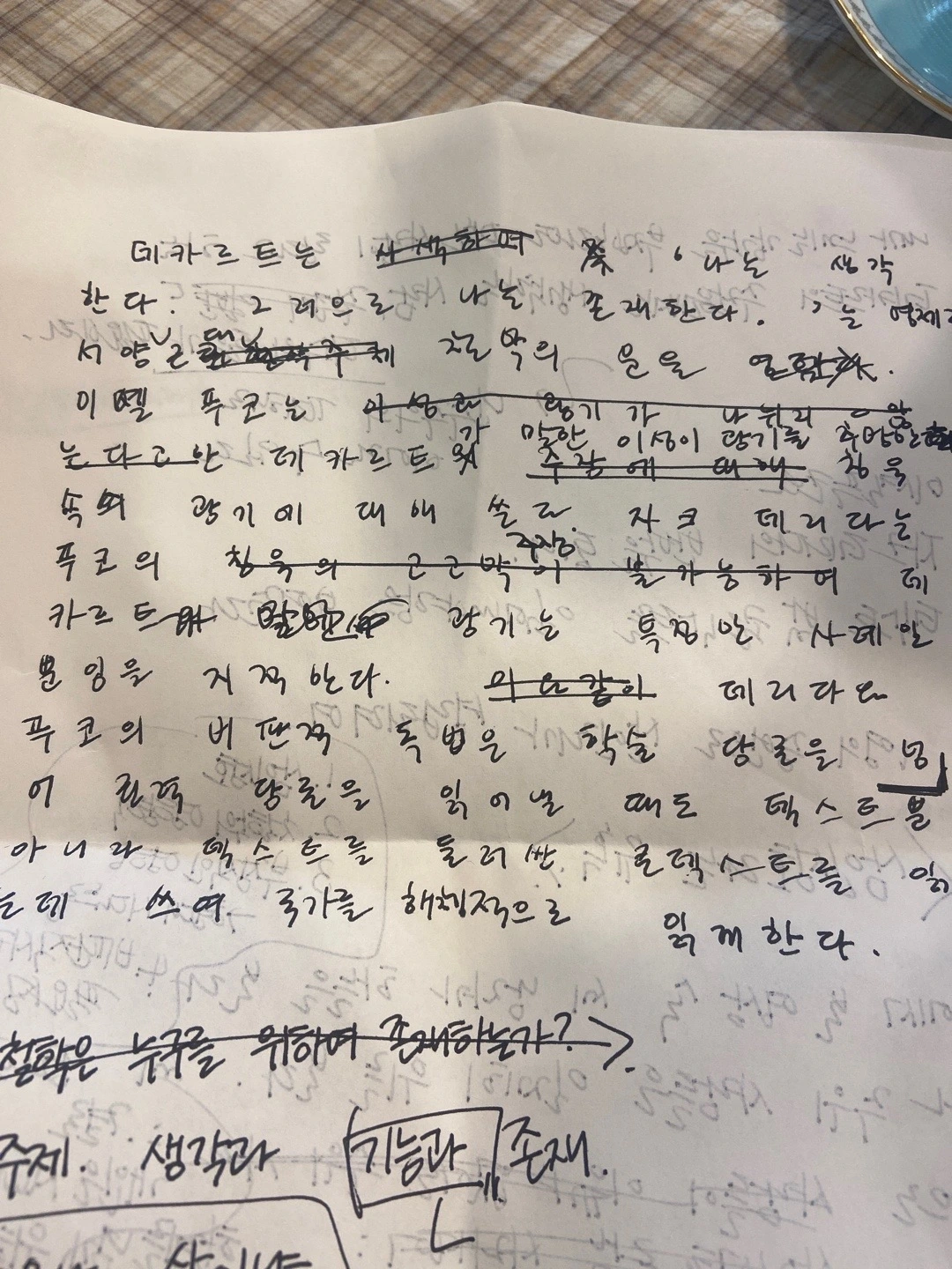 1교시는 검색했던 내용과 다르게... 새로운 유형으로 출제되었다. 지금 정답을 확신하는 건 맞춤법 중에서 “은 커녕“을 “은커녕” 으로 고친 문제뿐….. 나머지는 다 은혜(*크리스천이 스스로는 할 수 없을 때 하나님께 구하게 된다는 뉘앙스의 다의어)와 부분점수에 기댄다. 감독관님은 기출문제가 없어서 찾아보기 어려웠을 거라고, 평소실력(응?) 대로 보라고 하셨다.