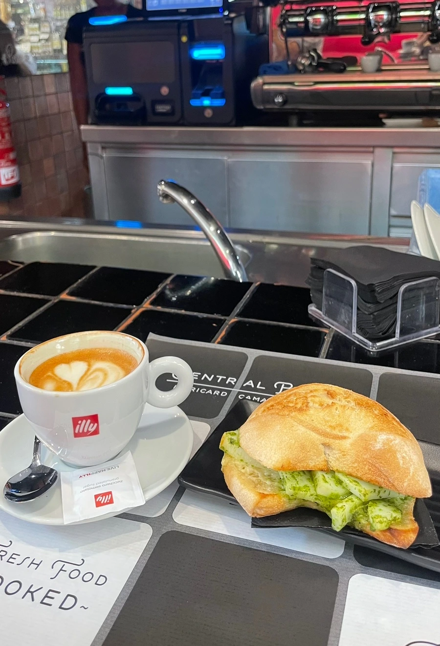 ‘어차피 카페 가서 애매한 샐러드 샌드위치에 10유로 쓰느니 센트럴바 잠깐 들러서 보카디요 먹고 갈까?’라고 합리화를 하면서 재빨리 마켓으로 들어갔다. 평소엔 짧게는 10분, 길게는 1시간을 기다려야 하는 유명포인트지만, 역시 평일 아침이라 대기가 없었고 무려 자리를 골라 앉는 호사를 누렸다.