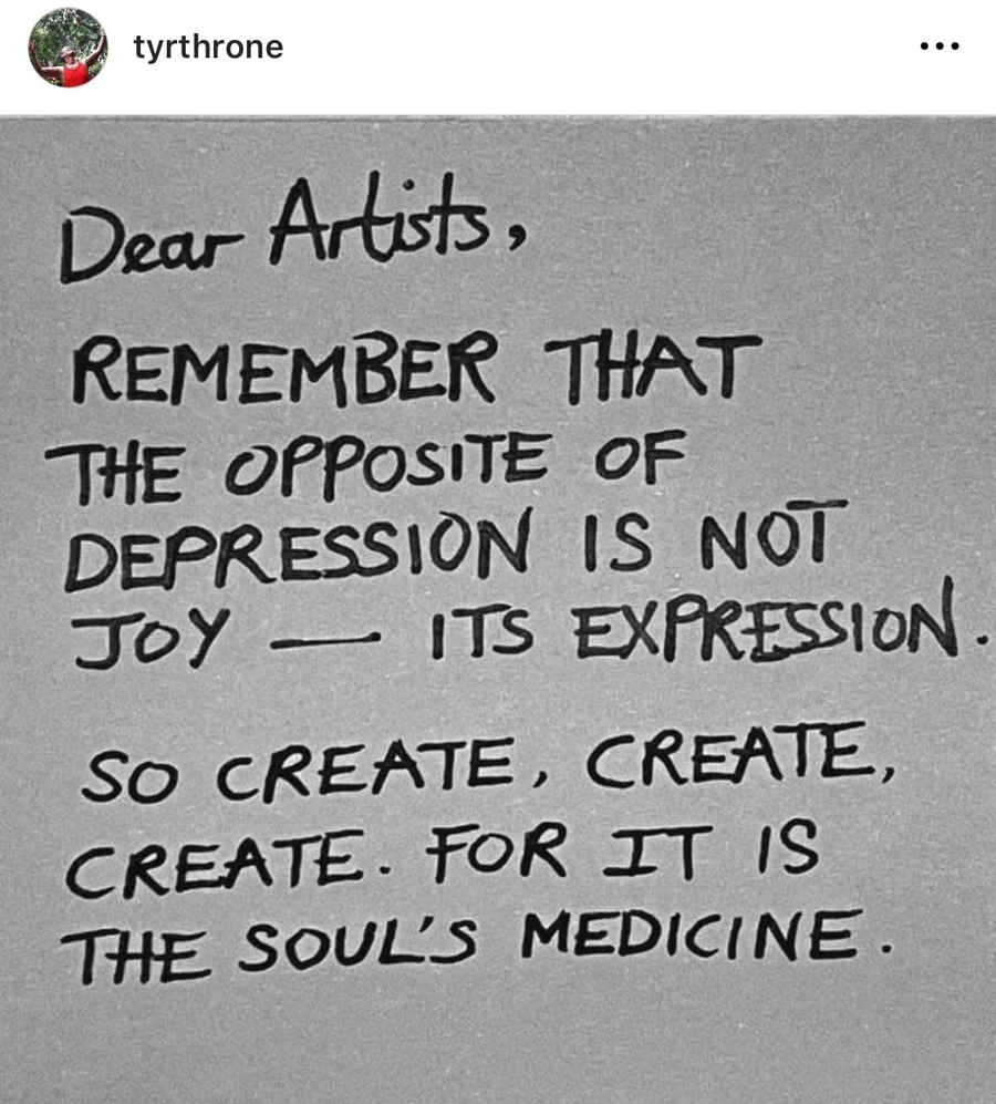 예술가들이여, 우울함(Depression)의 반대는 즐거움이 아니라 표출(Expression) 임을 기억하세요. 그리고 창작, 창작, 창작하세요. 그것이 영혼의 약이니까요.