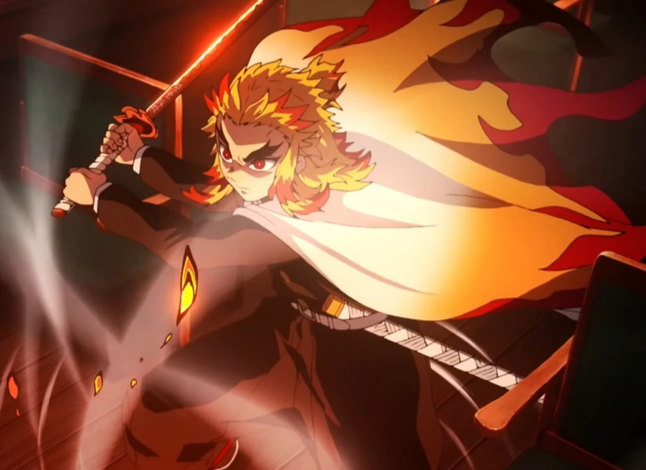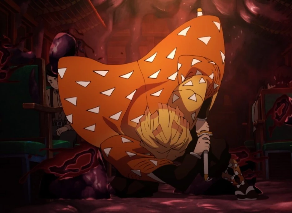 일단 친절합니다. 첫 등장한 주인공들은 굳이 서로를 이름으로 호칭하며 관객들에게 각자를 소개합니다. 정신나갈 듯이 쾌활한 친구가 있으면 끝도 없이 소심한 친구가 있고, 그 사이의 유일한 정상인(?) 주인공은 차분히 중도를 지키죠. 기본적인 액션으로 문을 연 뒤 각자의 대사와 사연으로 개성을 확보합니다. 젠이츠나 이노스케보다는 탄지로와 렌고쿠에게 훨씬 많은 스포트라이트가 맞춰져 있죠.