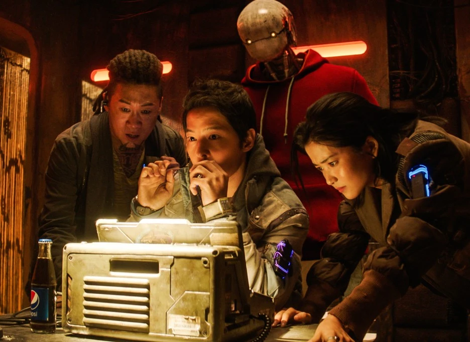 우주 활극 장르에 충실한 볼거리와 떄깔로 눈길을 확 잡아끕니다. 최근 여러 흥행작들이 한국영화계의 기술력을 만방으로 증명한 바 있지만, 토종 거대자본 블록버스터의 존재감은 여전히 아주 잘 살아있죠. 다른 곳도 아닌 우주를 무대로 이 정도의 오락성 가득한 액션을 뽑아냈다는 사실만으로 극장이 아닌 넷플릭스행을 아쉬워할 이유는 충분합니다.