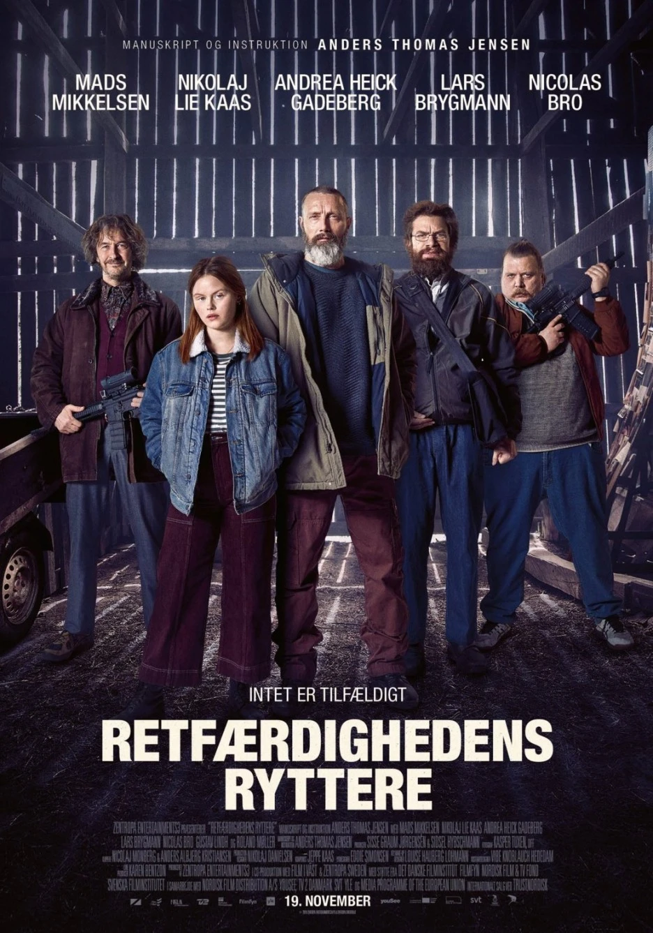 2000년 장편 데뷔작 <Blinkende lygter(Flickering Lights)>부터 모든 영화들을 매즈 미켈슨과 함께하고 있는 앤더스 토마스 옌센 감독의 신작, <라이더스 오브 저스티스>입니다. 덴마크 감독의 덴마크 영화인지라 원제도 덴마크어로 되어 있죠. 뜻은 '정의의 기수'로 영어판과 동일합니다. 이번에도 함께한 매즈 미켈슨과 니콜라이 리 코스, 라스 브리그만, 안드레아 게드버그 등이 출연했죠.