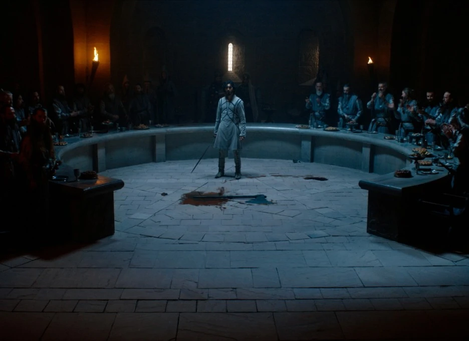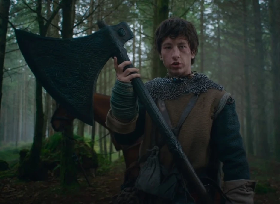그렇게 펼쳐지는 <그린 나이트>와 가웨인의 모험은 기사도를 이야기하는 것처럼 보입니다. 사전에 의하면 기사도는 중세 유럽에서 기사로서 지켜야 했던 도덕을 뜻하며, 기독교의 윤리를 바탕으로 용기와 예의, 명예 등 기사라면 응당 지켜야 할 덕목을 가리키죠. 왕족의 피를 지니고도 평범한 청년 신세를 벗어나지 못했던 가웨인이 한 명의 어엿한 기사로 성장하는 과정을 다룬다는 겁니다.
